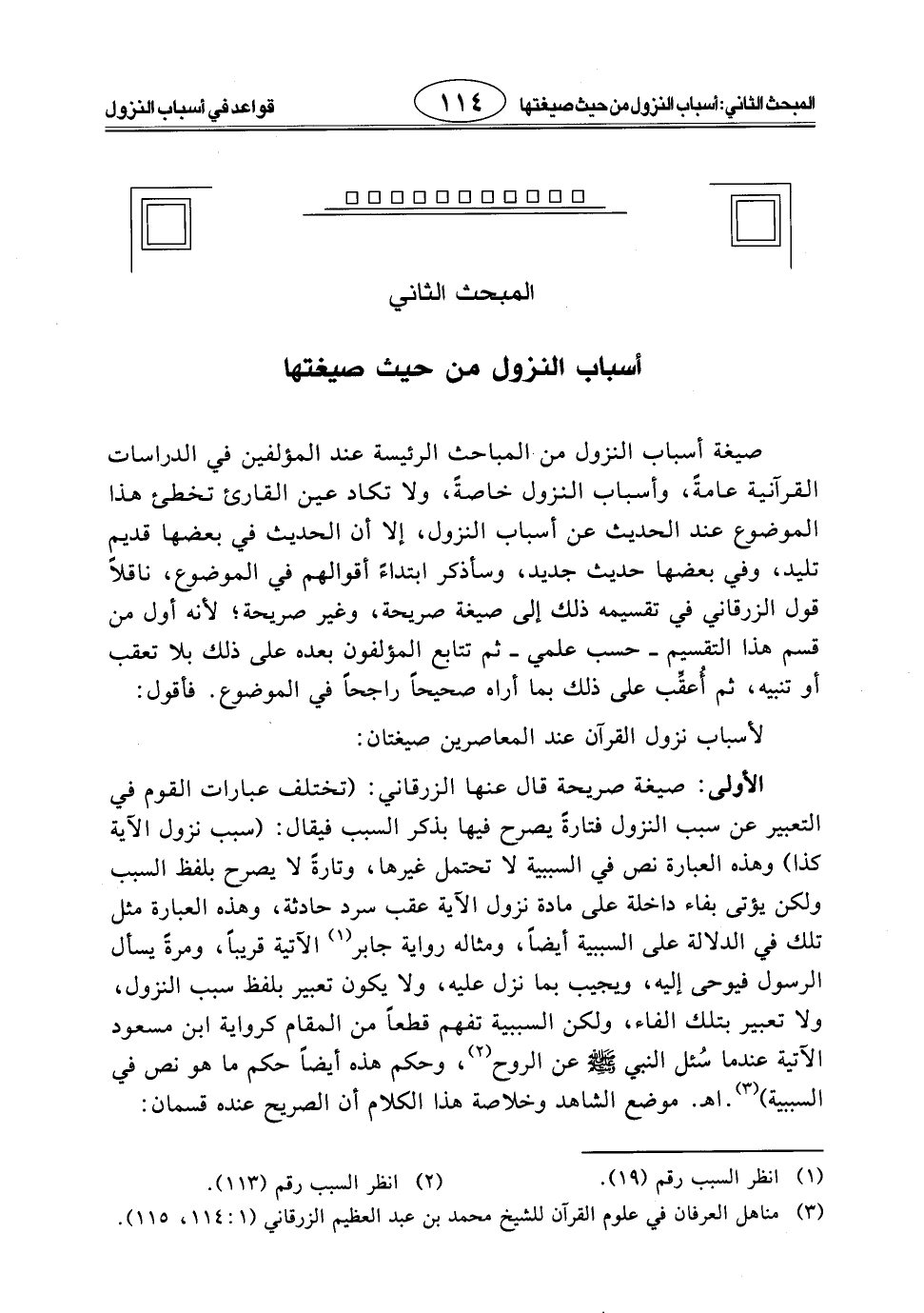 صيغة أسباب النزول من المباحث الرئيسة عند المؤلفين في الدراسات القرآنية عامة، وأسباب النزول خاصة، ولا تكاد عين القارئ تخطئ هذا الموضوع عند الحديث عن أسباب النزول، إلا أن الحديث في بعضها قديم تليد، وفي بعضها حديث جديد، وسأذكر ابتداء أقوالهم في الموضوع، ناقلاً قول الزرقاني في تقسيمه ذلك إلى صيغة صريحة، وغير صريحة؛ لأنه أول من قسم هذا التقسيم - حسب علمي - ثم تتابع المؤلفون بعده على ذلك بلا تعقب أو تنبيه، ثم أُعقِّب على ذلك بما أراه صحيحاً راجحاً في الموضوع. فأقول: