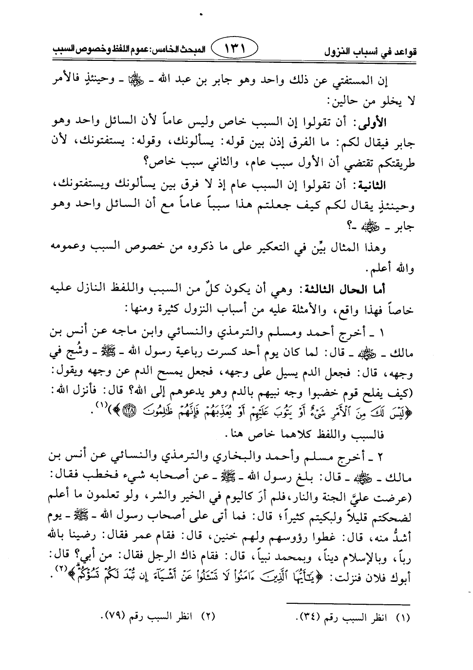 الأولى: أن تقولوا إن السبب خاص وليس عامًا لأن السائل واحد وهو جابر فيقال لكم: ما الفرق إذن بين قوله: يسألونك، وقوله: يستفتونك، لأن طريقتكم تقتضي أن الأول سبب عام، والثاني سبب خاص؟