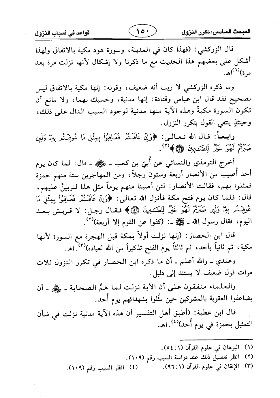 وما ذكره الزركشي لا ريب أنه ضعيف، وقوله: إنها مكية بالاتفاق ليس بصحيح فقد قال ابن عبَّاسٍ وقتادة: إنها مدنية، وحسبك. بهما، ولا مانع أن تكون السورة مكيةً وهذه الآية منها مدنية لوجود السبب الدال على ذلك، وحينئذ ينتفي القول بتكرر النزول.