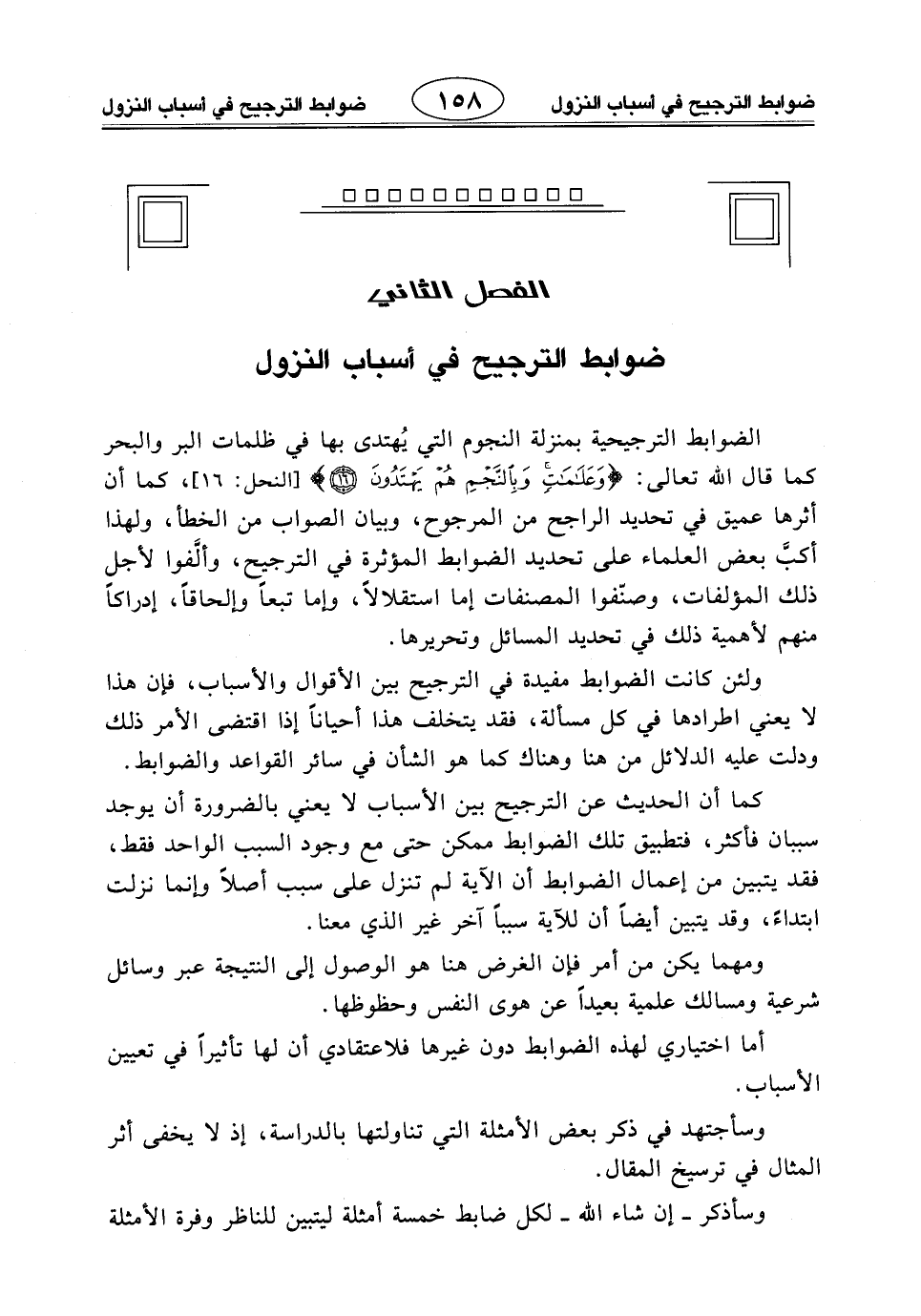 أما اختياري لهذه الضوابط دون غيرها فلاعتقادي أن لها تأثيراً في تعيين الأسباب.