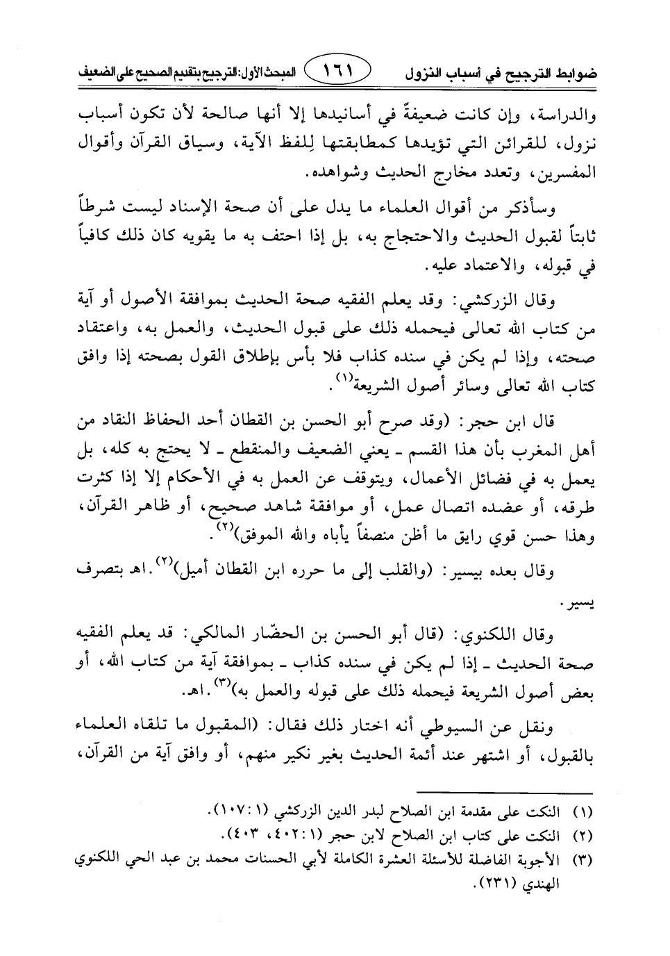 وقال اللكنوي: (قال أبو الحسن بن الحضّار المالكي: قد يعلم الفقيه صحة الحديث - إذا لم يكن في سنده كذاب - بموافقة آية من كتاب اللَّه، أو بعض أصول الشريعة فيحمله ذلك على قبوله والعمل به). اهـ.