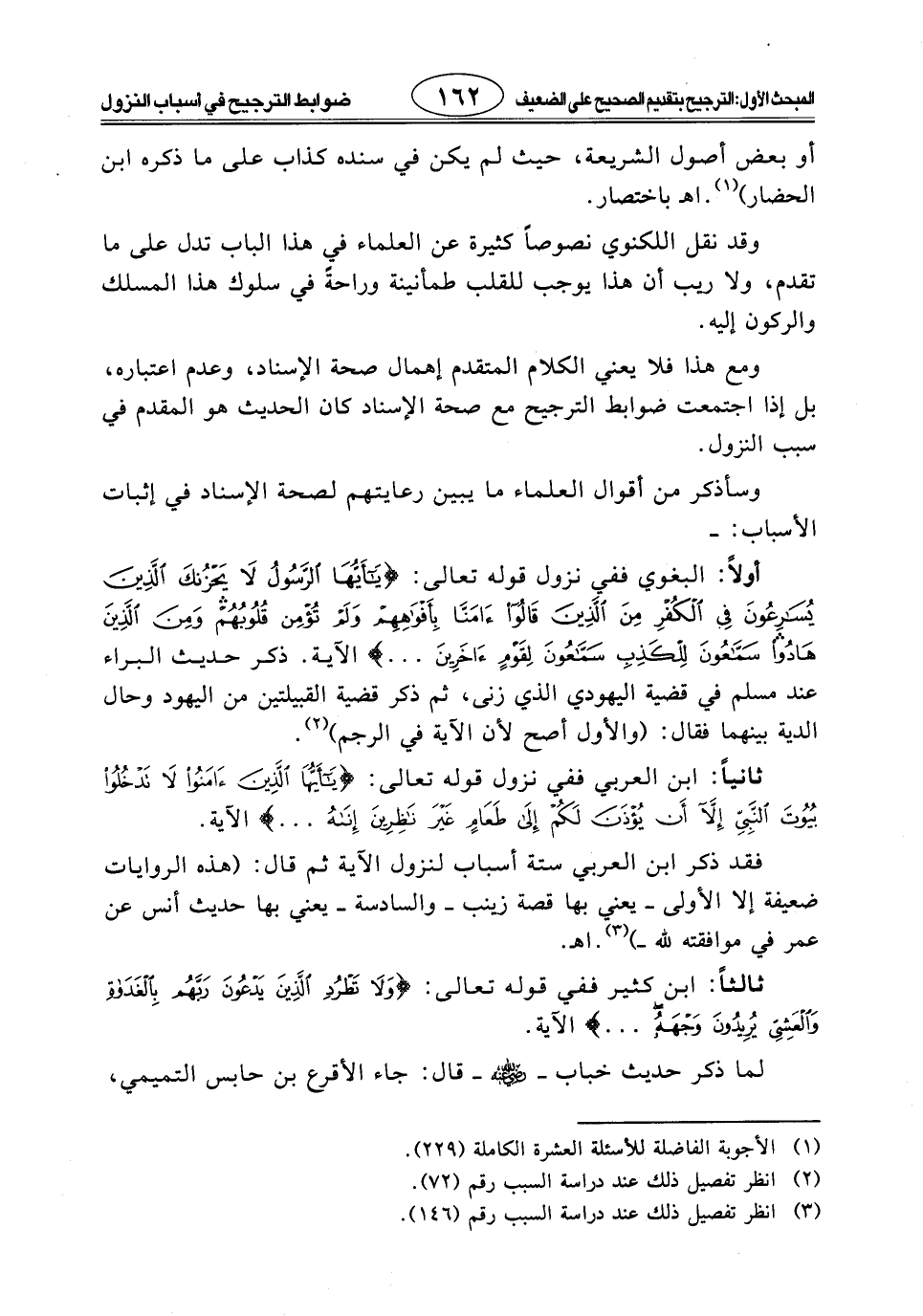 وسأذكر من أقوال العلماء ما يبين رعايتهم لصحة الإسناد في إثبات الأسباب: -