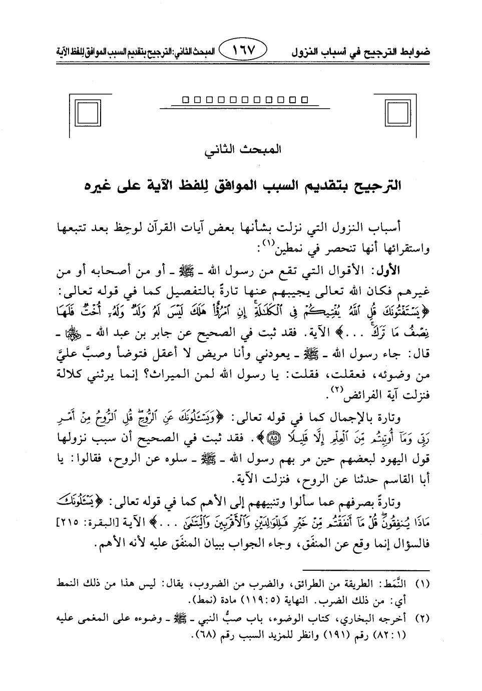الترجيح بتقديم السبب الموافق لِلفظ الآية على غيره