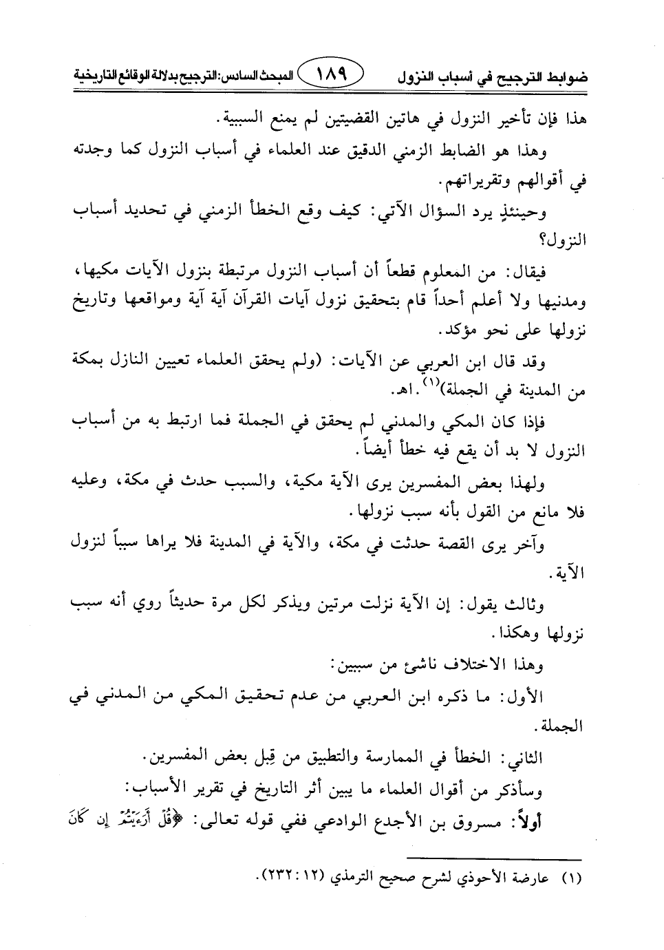 فإذا كان المكي والمدني لم يحقق في الجملة فما ارتبط به من أسباب النزول لا بد أن يقع فيه خطأ أيضاً.