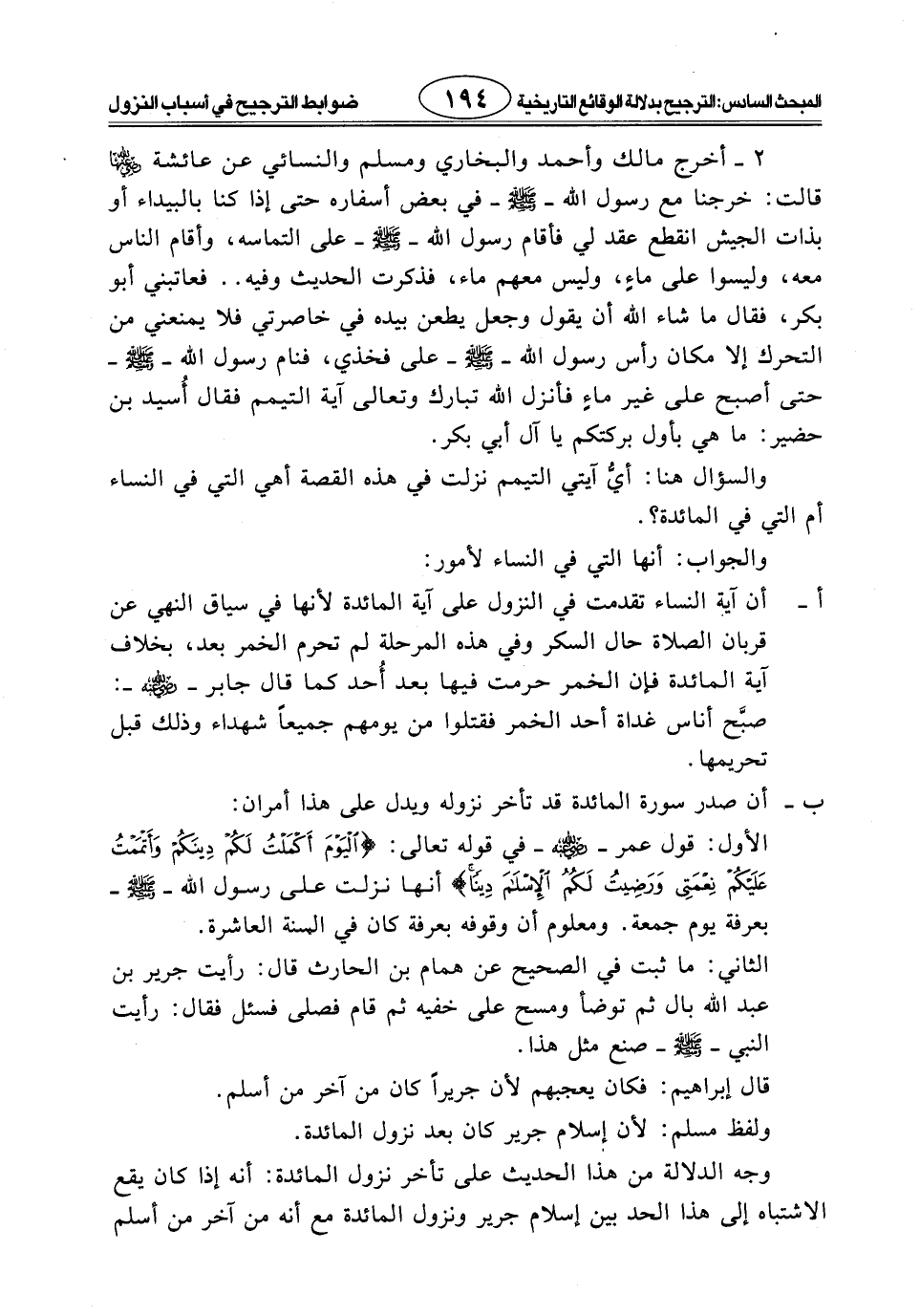 وجه الدلالة من هذا الحديث على تأخر نزول المائدة: أنه إذا كان يقع الاشتباه إلى هذا الحد بين إسلام جرير ونزول المائدة مع أنه من آخر من أسلم