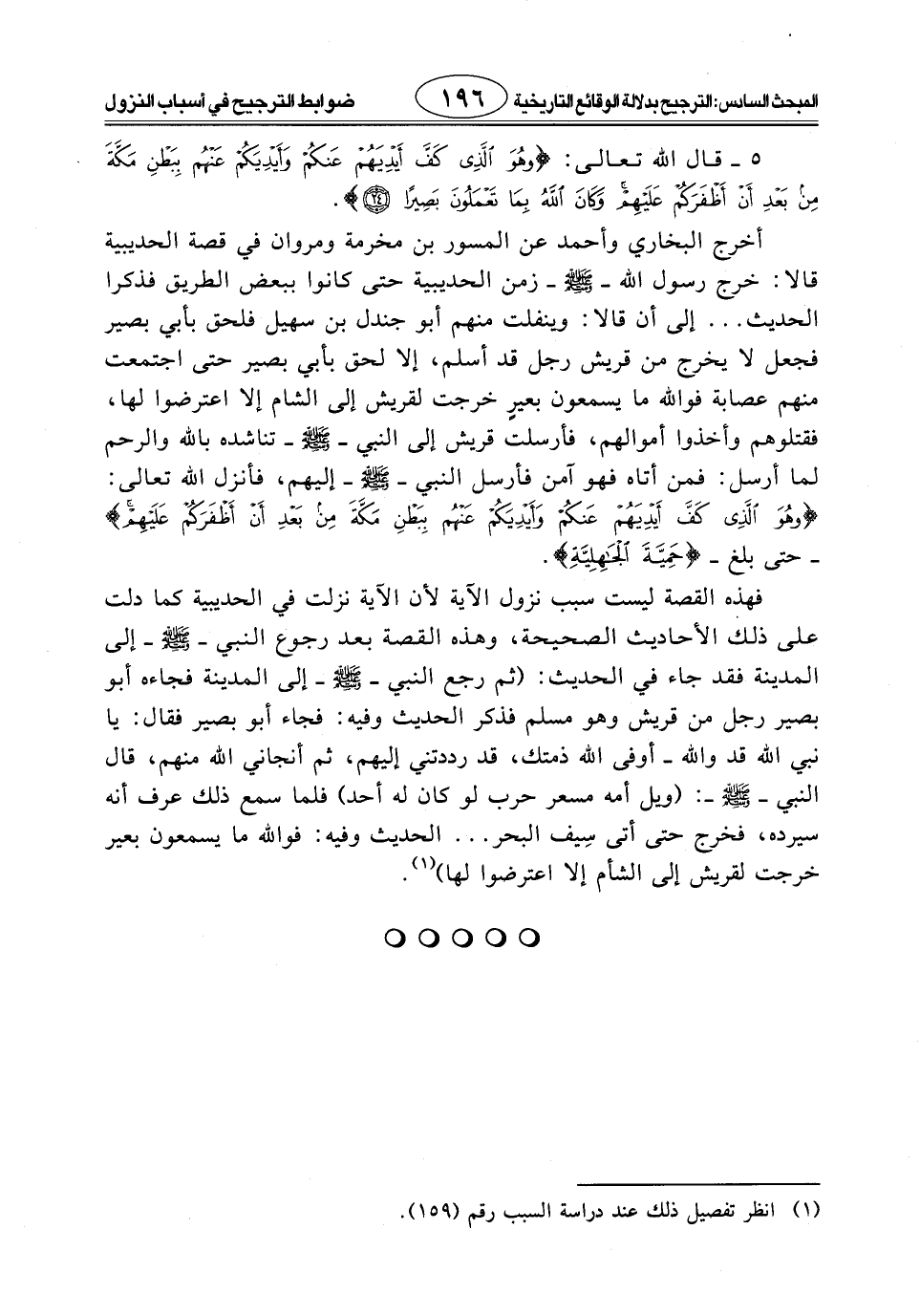 فهذه القصة ليست سبب نزول الآية لأن الآية نزلت في الحديبية كما دلت على ذلك الأحاديث الصحيحة، وهذه القصة بعد رجوع النبي - صَلَّى اللَّهُ عَلَيْهِ وَسَلَّمَ - إلى المدينة فقد جاء في الحديث: (ثم رجع النبي - صَلَّى اللَّهُ عَلَيْهِ وَسَلَّمَ - إلى المدينة فجاءه أبو بصير رجل من قريش وهو مسلم فذكر الحديث وفيه: فجاء أبو بصير فقال: يا نبي اللَّه قد واللَّه - أوفى الله ذمتك، قد رددتني إليهم، ثم أنجاني الله منهم، قال النبي - صَلَّى اللَّهُ عَلَيْهِ وَسَلَّمَ -: (ويل أمه مسعر حرب لو كان له أحد) فلما سمع ذلك عرف أنه سيرده، فخرج حتى أتى سِيف البحر ... الحديث وفيه: فواللَّه ما يسمعون بعير خرجت لقريش إلى الشأم إلا اعترضوا لها).