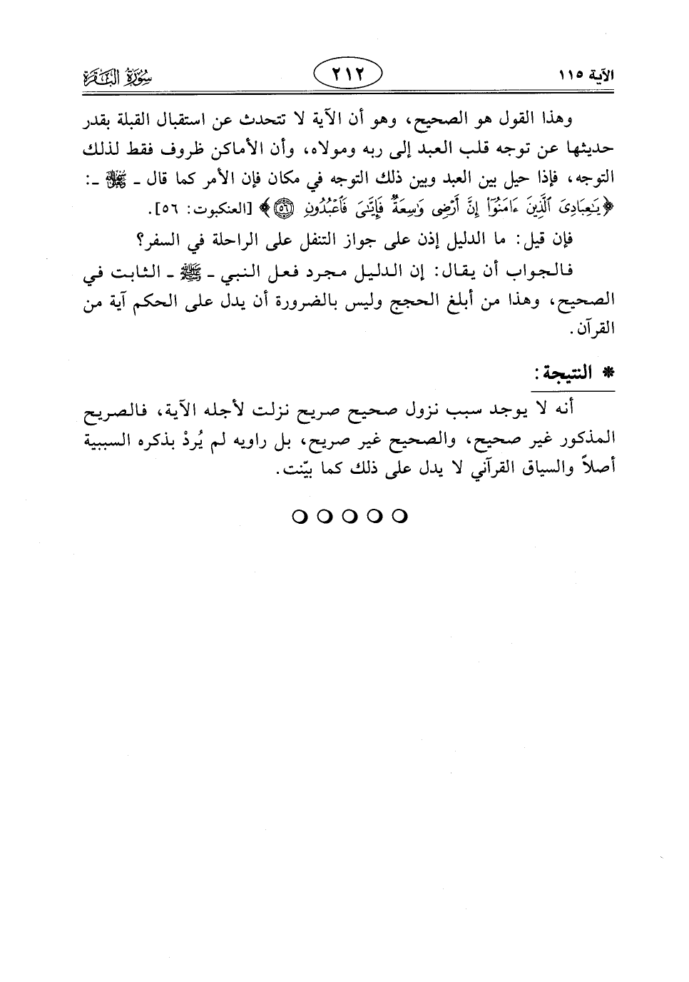 أنه لا يوجد سبب نزول صحيح صريح نزلت لأجله الآية، فالصريح المذكور غير صحيح، والصحيح غير صريح، بل راويه لم يُردْ بذكره السببية أصلاً والسياق القرآني لا يدل على ذلك كما بيّنت.