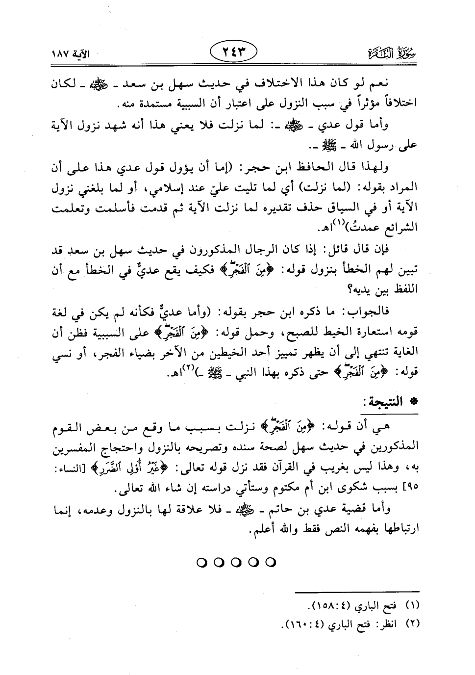 هكذا جاء فى سبب نزول هذه الآية وقد أورده جمهور المفسرين وجعلوه سببًا لنزولها منهم: الطبري والبغوي وابن عطية والقرطبي وابن كثير والطاهر بن عاشور.