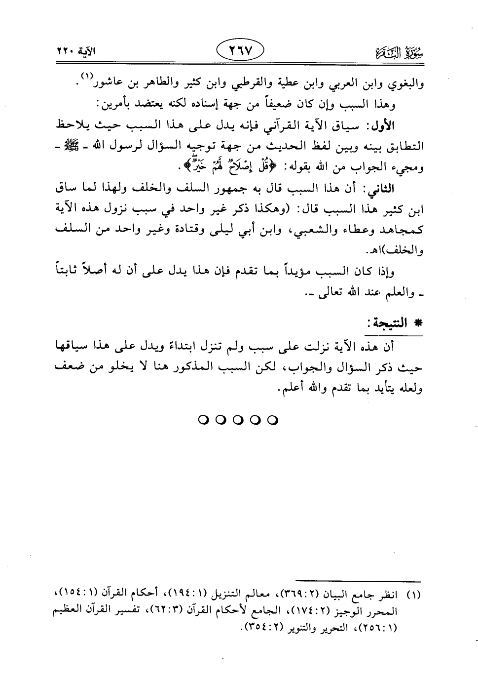 وإذا كان السبب مؤيدًا بما تقدم فإن هذا يدل على أن له أصلاً ثابتًا - والعلم عند اللَّه تعالى -.