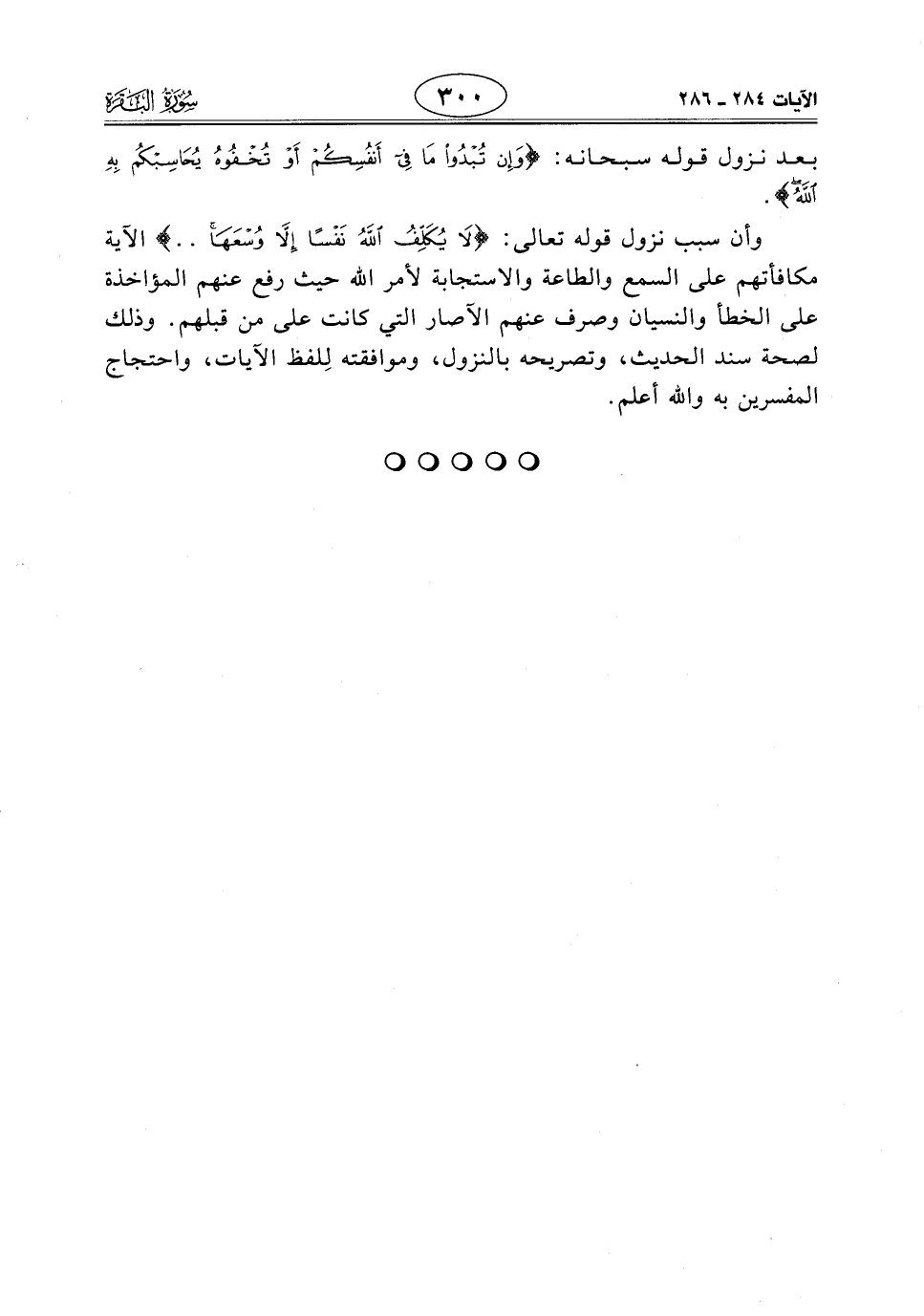 وأن سبب نزول قوله تعالى: (لَا يُكَلِّفُ اللَّهُ نَفْسًا إِلَّا وُسْعَهَا .. ) الآية مكافأتهم على السمع والطاعة والاستجابة لأمر اللَّه حيث رفع عنهم المؤاخذة على الخطأ والنسيان وصرف عنهم الآصار التي كانت على من قبلهم. وذلك لصحة سند الحديث، وتصريحه بالنزول، وموافقته لِلفظ الآيات، واحتجاج المفسرين به واللَّه أعلم.