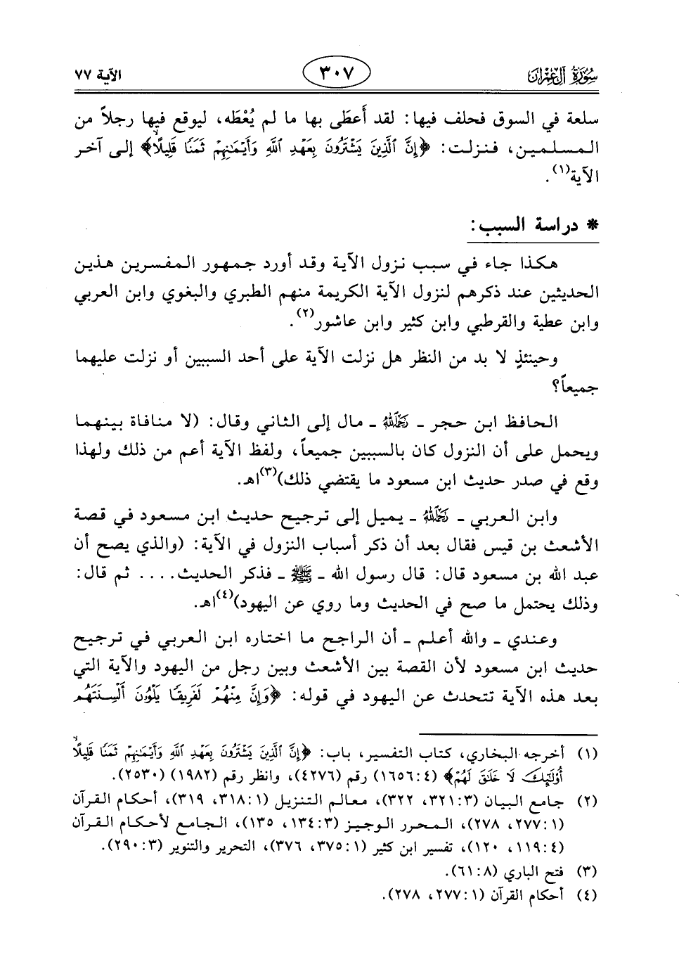 وعندي - واللَّه أعلم - أن الراجح ما اختاره ابن العربي في ترجيح حديث ابن مسعود لأن القصة بين الأشعث وبين رجل من اليهود والآية التي بعد هذه الآية تتحدث عن اليهود في قوله: (وَإِنَّ مِنْهُمْ لَفَرِيقًا يَلْوُونَ أَلْسِنَتَهُمْ