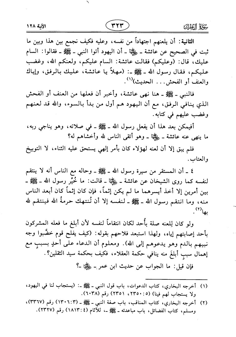 أفيمكن بعد هذا أن يفعل رسول الله - صَلَّى اللَّهُ عَلَيْهِ وَسَلَّمَ - في صلاته، وهو يناجي ربه، ما ينهى عنه عائشة - رضي الله عنها - وهو أتقى الناس لله وأخشاهم له؟
