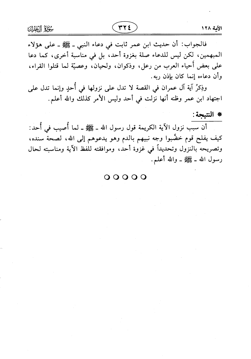 وذِكرُ آية آل عمران في القصة لا تدل على نزولها في أُحدٍ وإنما تدل على اجتهاد ابن عمر وظنه أنها نزلت في أحد وليس الأمر كذلك واللَّه أعلم.