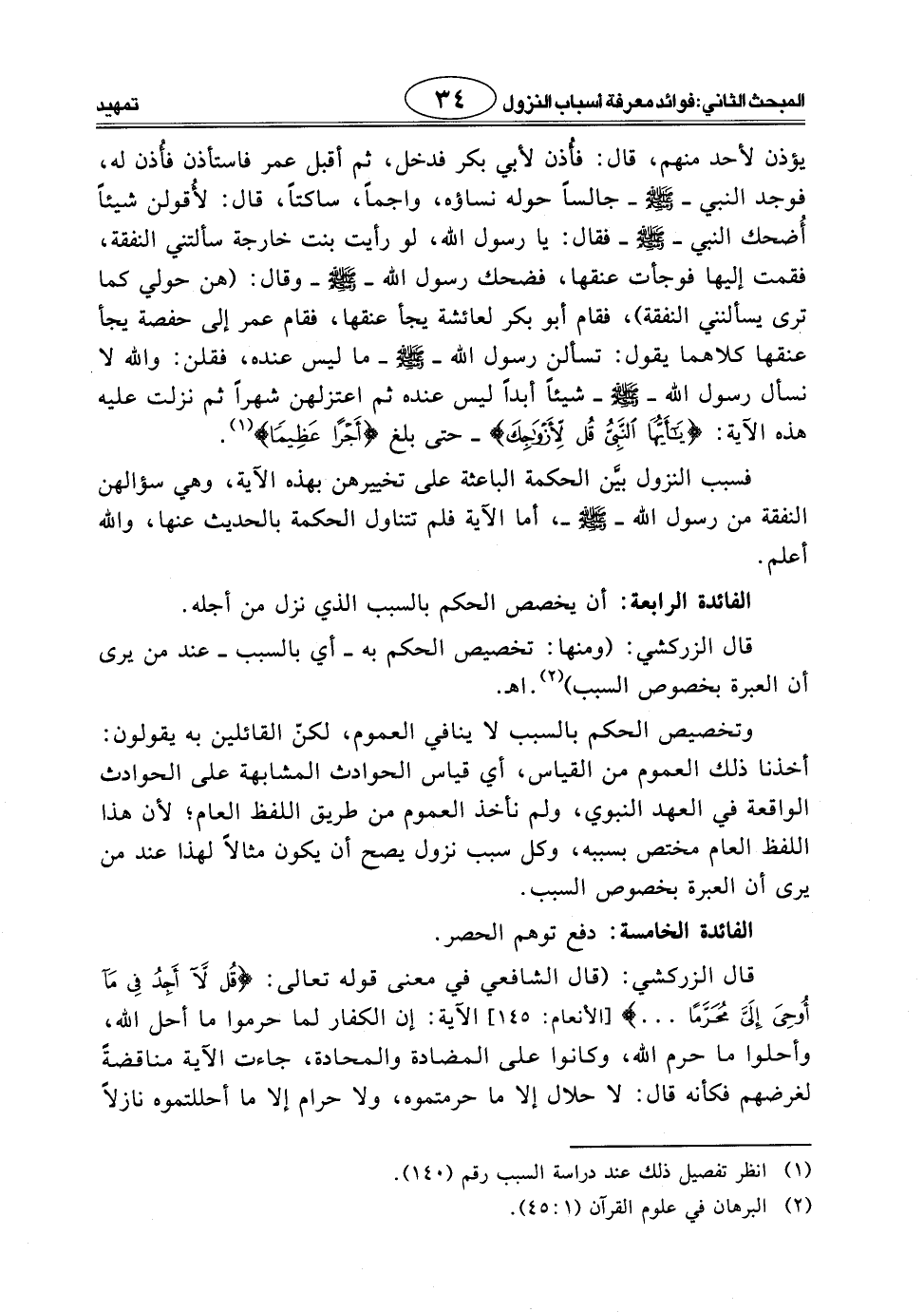 قال الزركشي: (ومنها: تخصيص الحكم به - أي بالسبب - عند من يرى أن العبرة بخصوص السبب). اهـ.