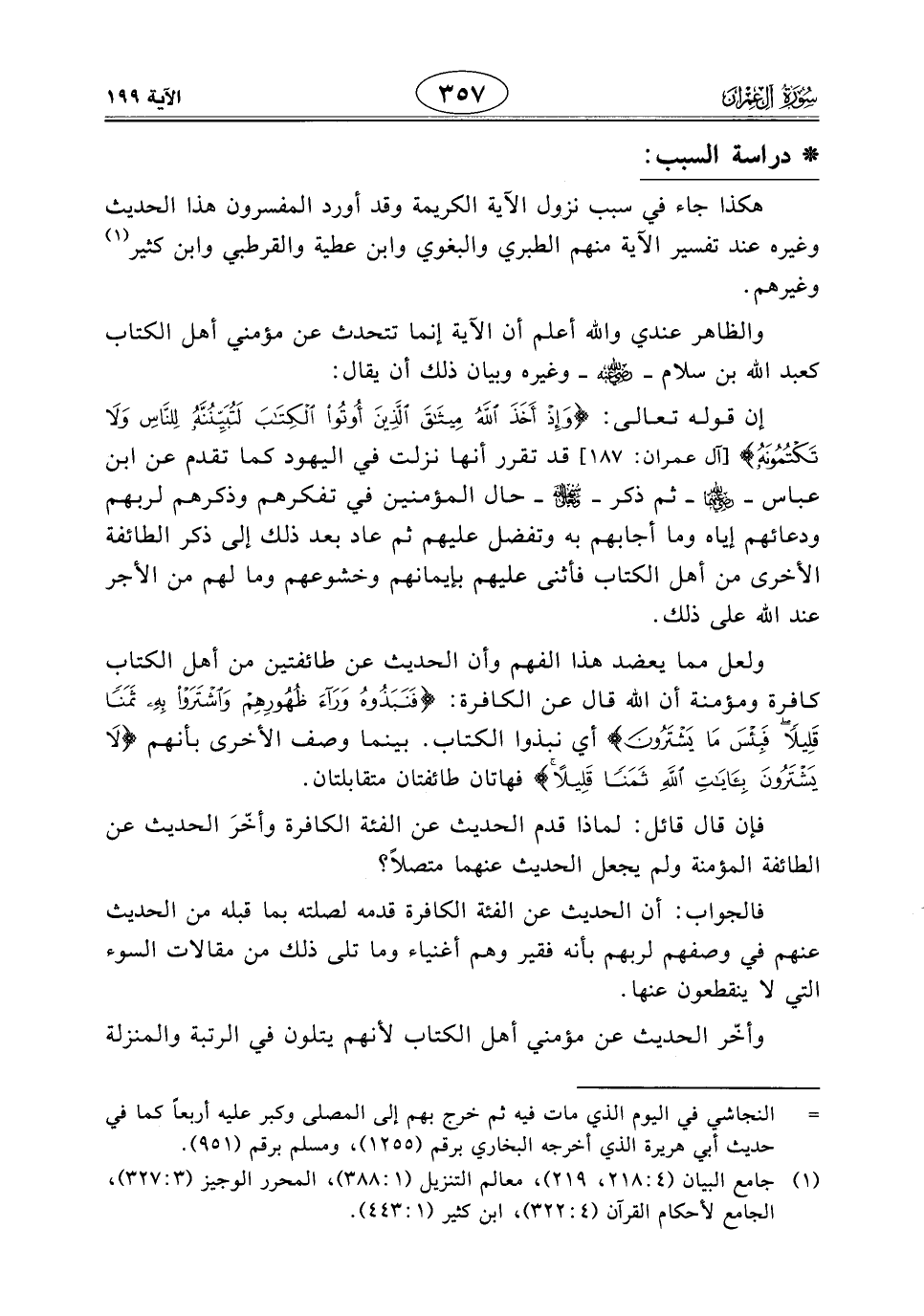 ولعل مما يعضد هذا الفهم وأن الحديث عن طائفتين من أهل الكتاب كافرة؛ ومؤمنة أن اللَّه قال عن الكافرة: (فَنَبَذُوهُ وَرَاءَ ظُهُورِهِمْ وَاشْتَرَوْا بِهِ ثَمَنًا قَلِيلًا فَبِئْسَ مَا يَشْتَرُونَ) أي نبذوا الكتاب. بينما وصف الأخرى بأنهم (لَا يَشْتَرُونَ بِآيَاتِ اللَّهِ ثَمَنًا قَلِيلًا) فهاتان طائفتان متقابلتان.