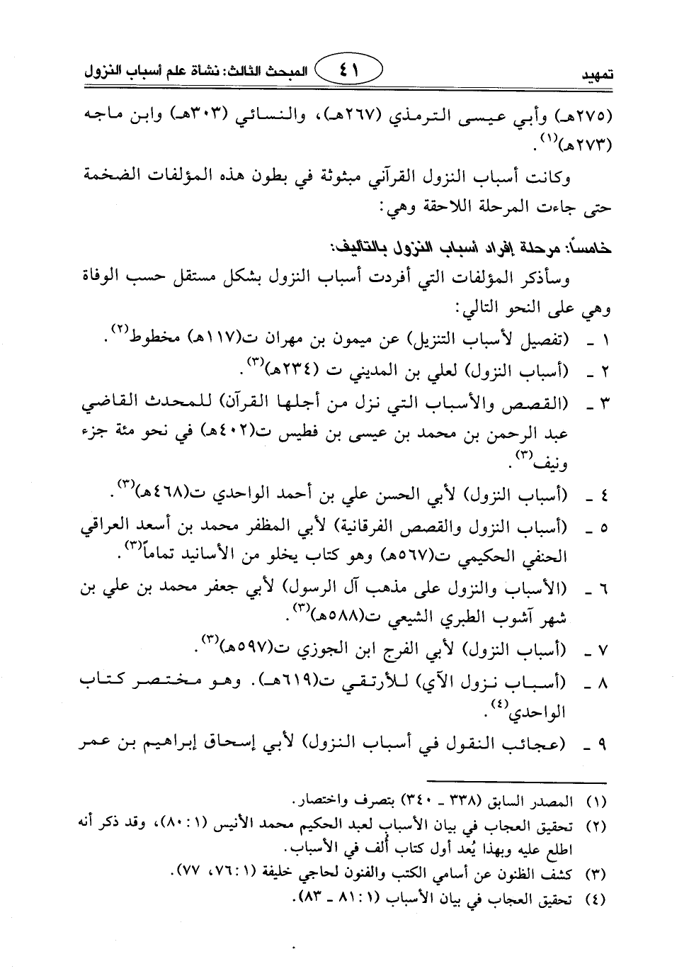 خامساً: مرحلة إفراد أسباب النزول بالتأليف: