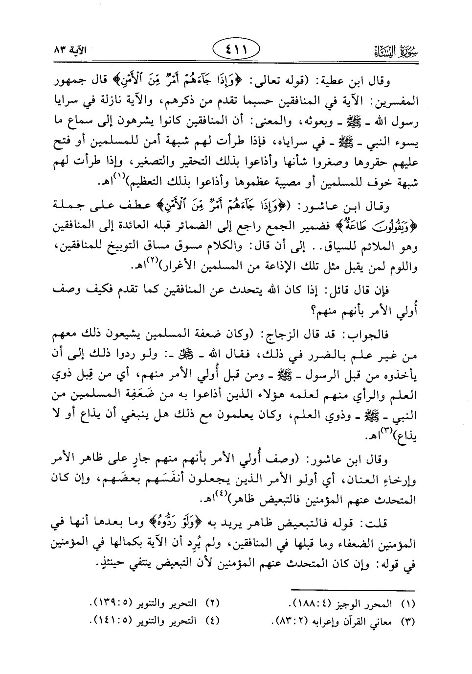 قلت: قوله فالتبعيض ظاهر يريد به (وَلَوْ رَدُّوهُ) وما بعدها أنها في المؤمنين الضعفاء وما قبلها في المنافقين، ولم يُرِد أن الآية بكمالها في المؤمنين في قوله: وإن كان المتحدث عنهم المؤمنين لأن التبعيض ينتفي حينئذٍ.