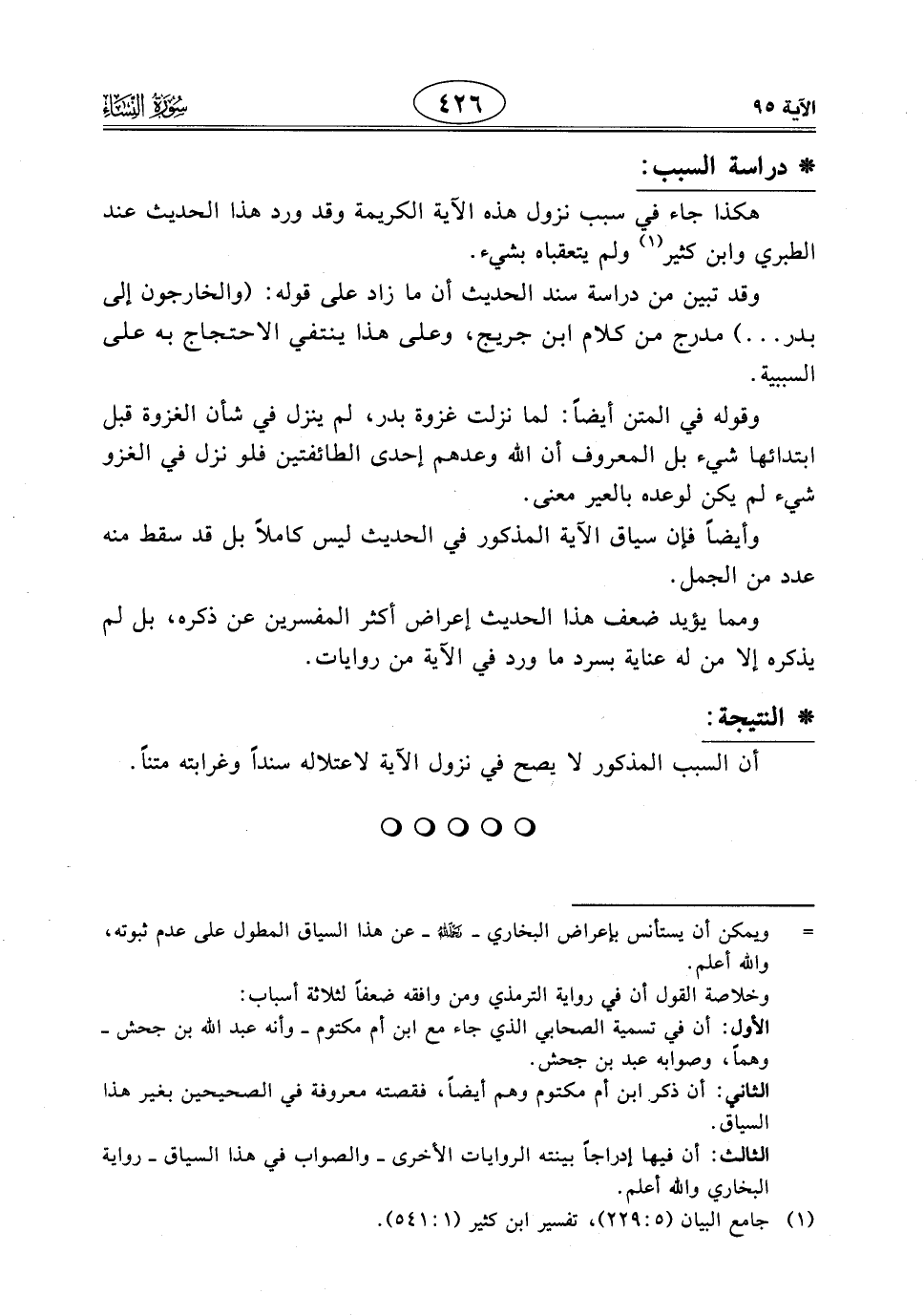 هكذا جاء في سبب نزول هذه الآية الكريمة وقد ورد هذا الحديث عند الطبري وابن كثير ولم يتعقباه بشيء.