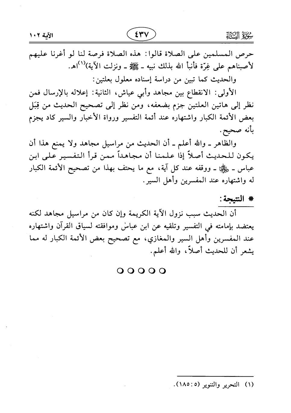 أن الحديث سبب نزول الآية الكريمة وإن كان من مراسيل مجاهد لكنه يعتضد بإمامته في التفسير وتلقيه عن ابن عبَّاسٍ وموافقته لسياق القرآن واشتهاره عند المفسرين وأهل السير والمغازي، مع تصحيح بعض الأئمة الكبار له مما يشعر أن للحديث أصلاً، واللَّه أعلم.
