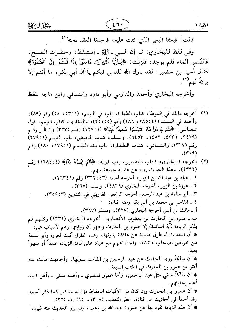 وفي لفظ للبخاري: ثم إن النبي - صَلَّى اللَّهُ عَلَيْهِ وَسَلَّمَ - استيقظ، وحضرت الصبح، فالتُمس الماء فلم يوجد، فنزلت: (يَا أَيُّهَا الَّذِينَ آمَنُوا إِذَا قُمْتُمْ إِلَى الصَّلَاةِ)