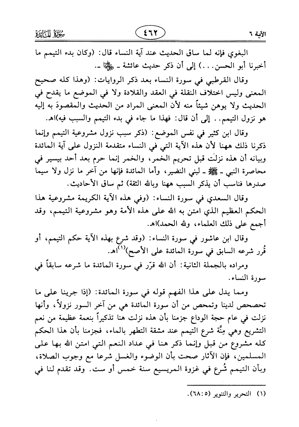 وقال ابن عاشور في سورة النساء: (وقد شرع بهذه الآية حكم التيمم، أو قُرر شرعه السابق في سورة المائدة على الأصح) اهـ.