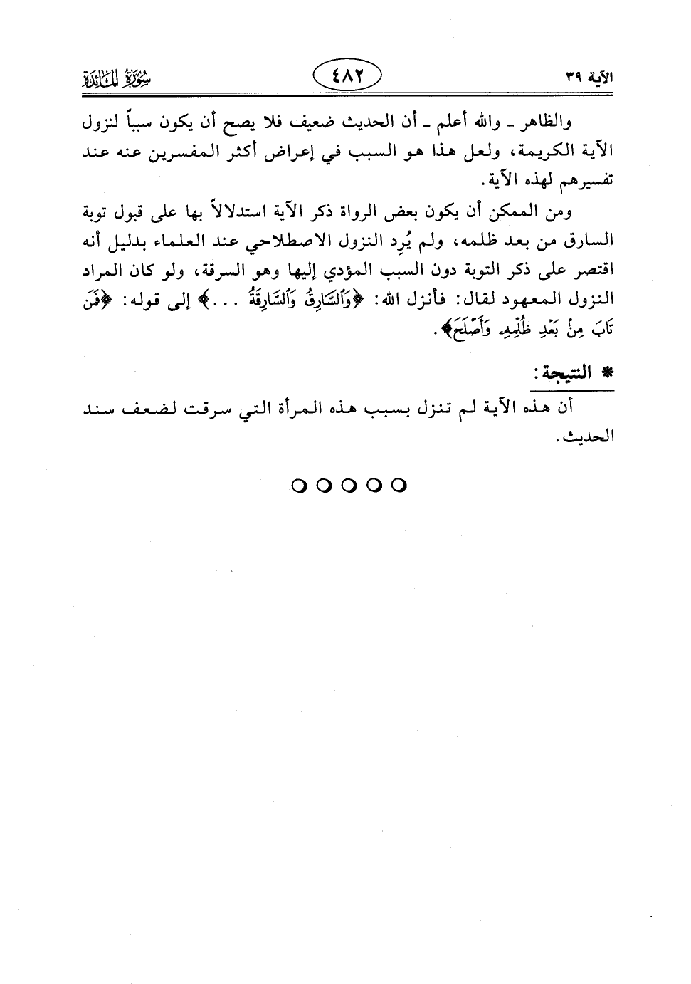 ومن الممكن أن يكون بعض الرواة ذكر الآية استدلالاً بها على قبول توبة السارق من بعد ظلمه، ولم يُرِد النزول الاصطلاحي عند العلماء بدليل أنه اقتصر على ذكر التوبة دون السبب المؤدي إليها وهو السرقة، ولو كان المراد النزول المعهود لقال: فأنزل الله: (وَالسَّارِقُ وَالسَّارِقَةُ ... ) إلى قوله: (فَمَنْ تَابَ مِنْ بَعْدِ ظُلْمِهِ وَأَصْلَحَ).