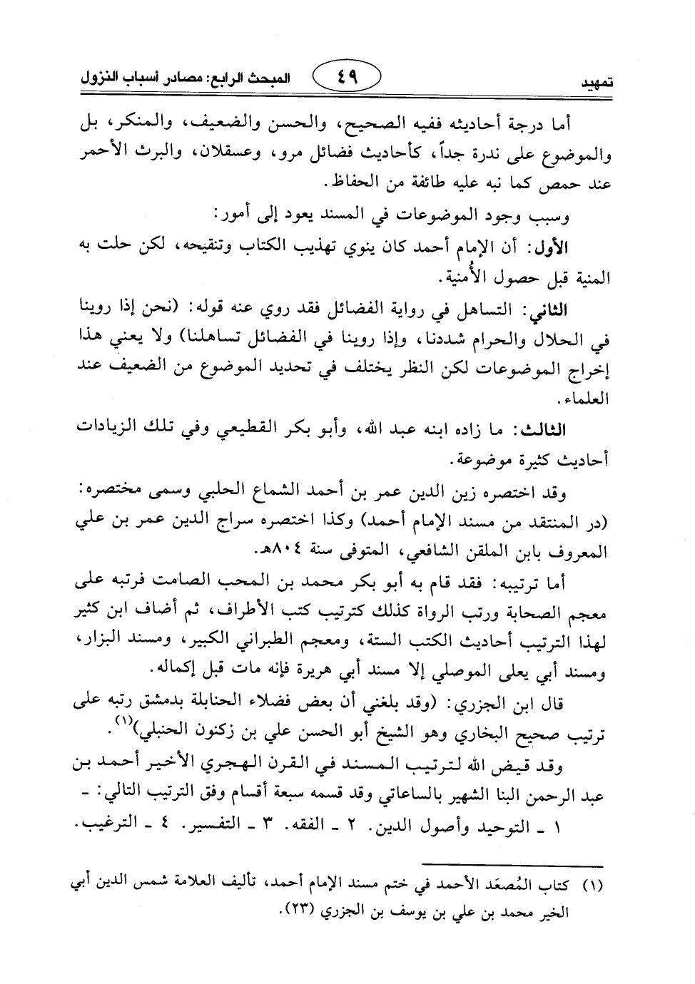 الأول: أن الإمام أحمد كان ينوي تهذيب الكتاب وتنقيحه، لكن حلت به المنية قبل حصول الأُمنية.