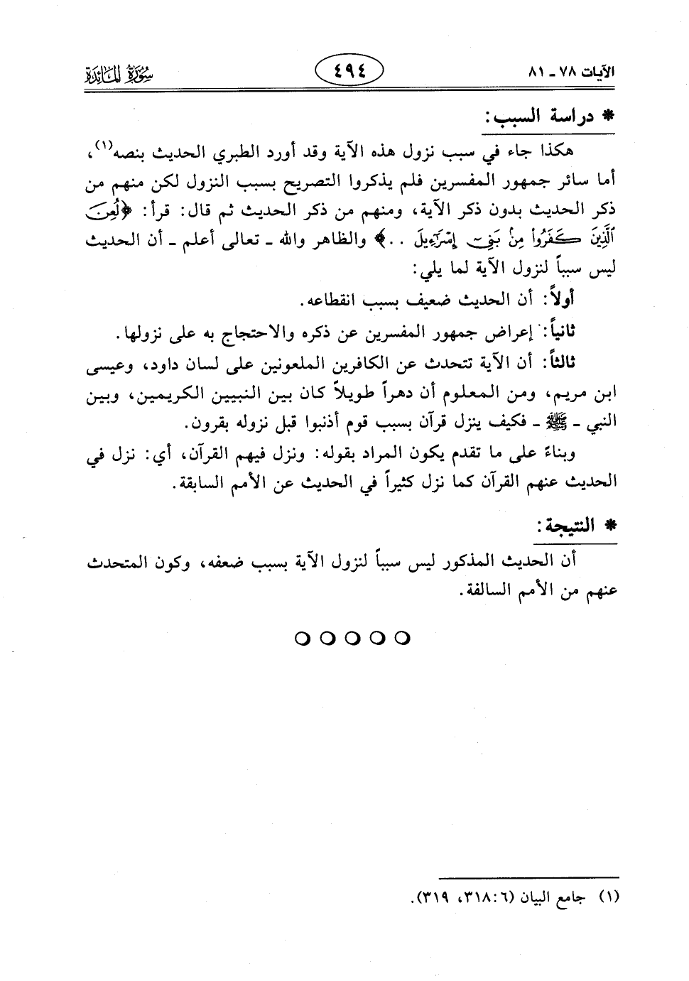 هكذا جاء في سبب نزول هذه الآية وقد أورد الطبري الحديث بنصه، أما سائر جمهور المفسرين فلم يذكروا التصريح بسبب النزول لكن منهم من ذكر الحديث بدون ذكر الآية، ومنهم من ذكر الحديث ثم قال: قرأ: (لُعِنَ الَّذِينَ كَفَرُوا مِنْ بَنِي إِسْرَائِيلَ .. ) والظاهر والله - تعالى أعلم - أن الحديث ليس سبباً لنزول الآية لما يلي:
