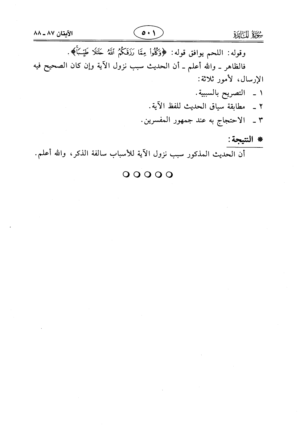 أن الحديث المذكور سبب نزول الآية للأسباب سالفة الذكر، واللَّه أعلم.