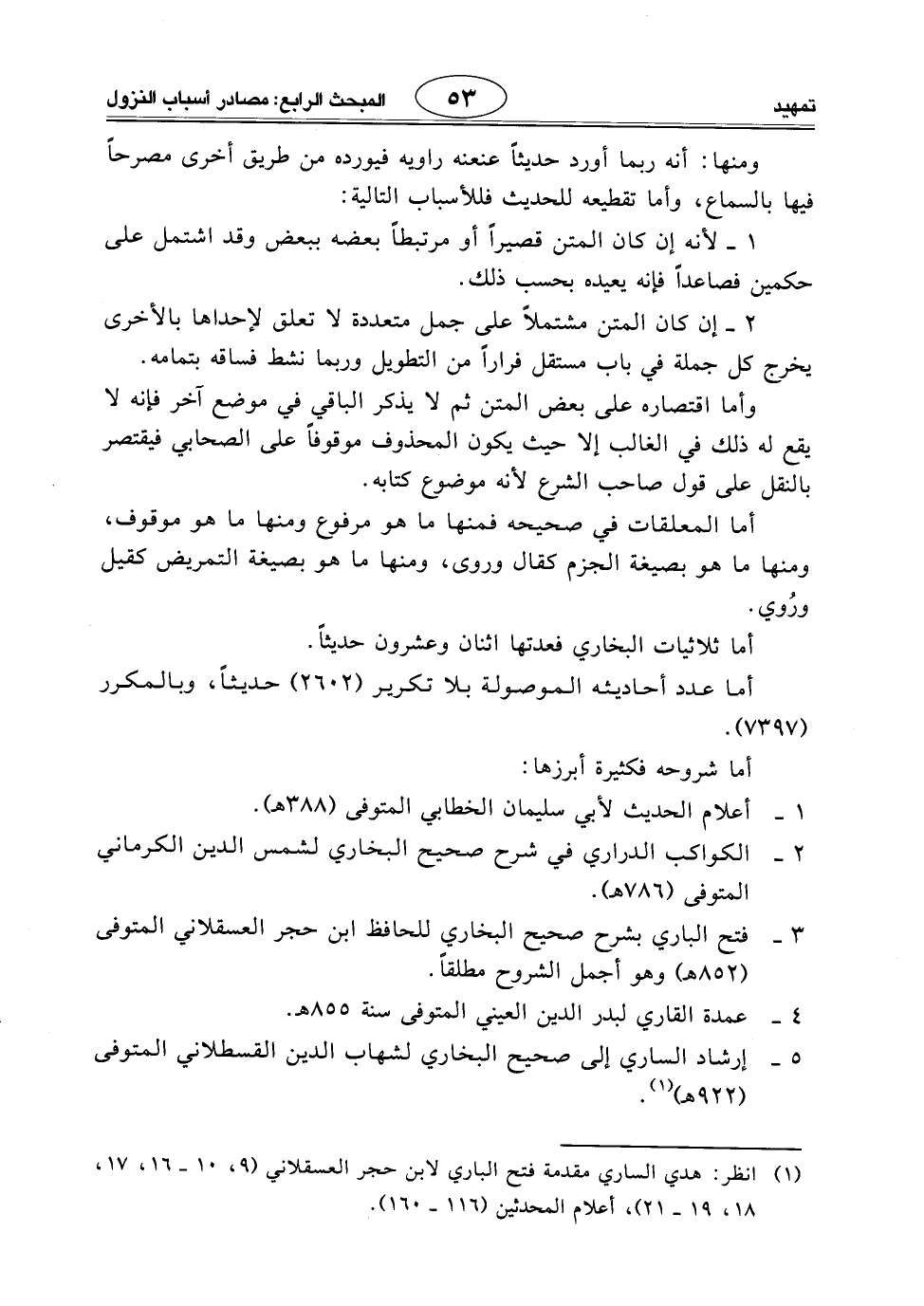 ومنها: أنه ربما أورد حديثًا عنعنه راويه فيورده من طريق أخرى مصرحًا فيها بالسماع، وأما تقطيعه للحديث فللأسباب التالية: