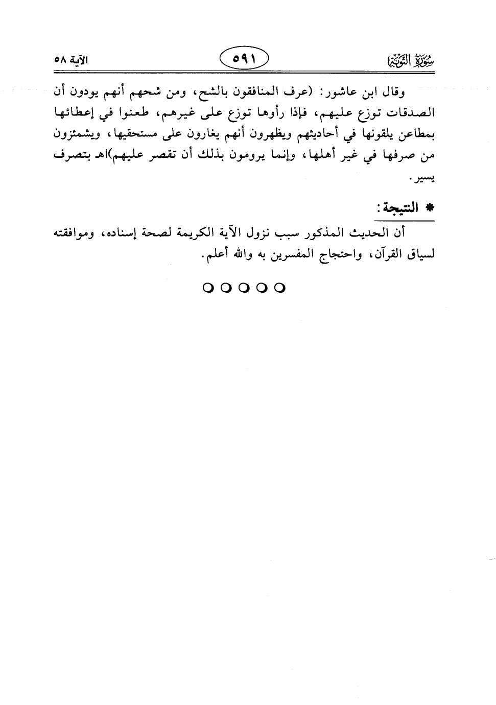وقال ابن عاشور: (عرف المنافقون بالشح، ومن شحهم أنهم يودون أن الصدقات توزع عليهم، فإذا رأوها توزع على غيرهم، طعنوا في إعطائها بمطاعن يلقونها في أحاديثهم ويظهرون أنهم يغارون على مستحقيها، ويشمئزون من صرفها في غير أهلها، وإنما يرومون بذلك أن تقصر عليهم). اهـ بتصرف يسير.