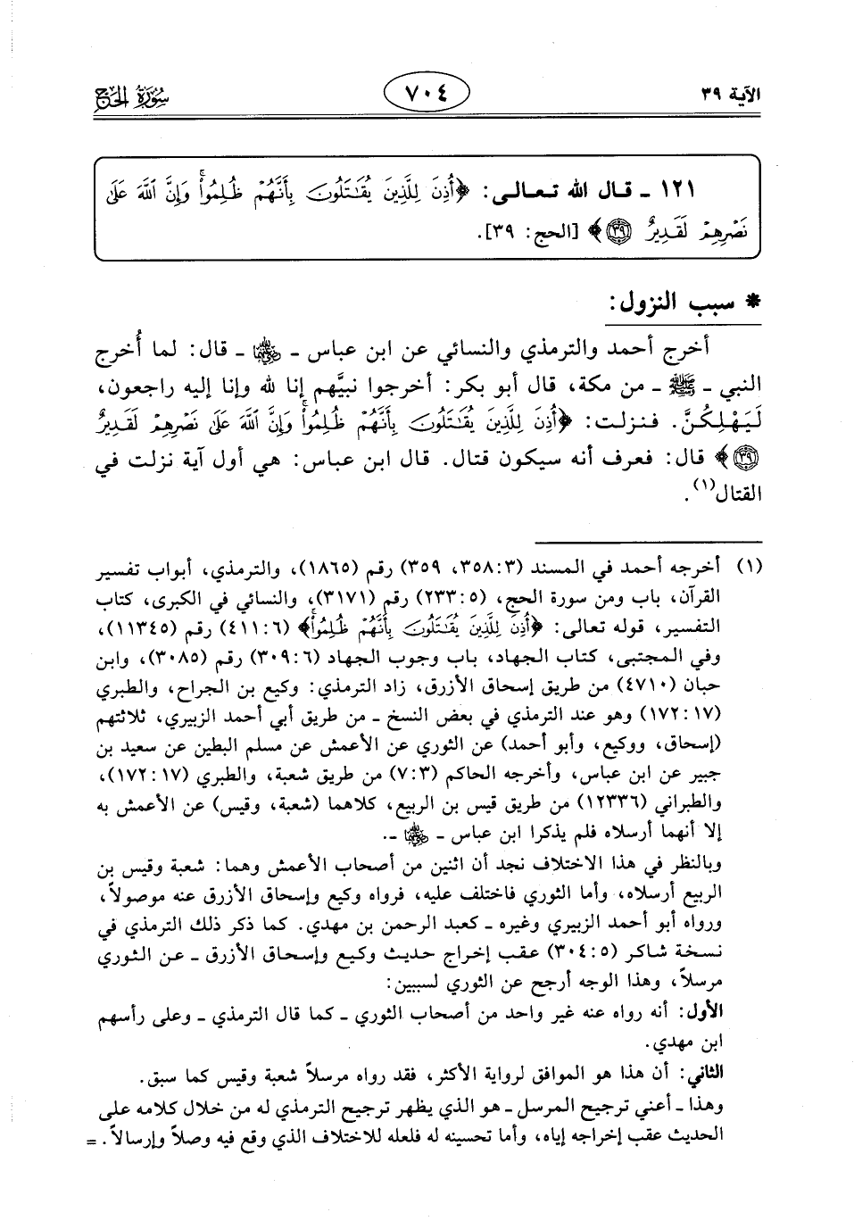 121 - قال الله تعالى: (أُذِنَ لِلَّذِينَ يُقَاتَلُونَ بِأَنَّهُمْ ظُلِمُوا وَإِنَّ اللَّهَ عَلَى نَصْرِهِمْ لَقَدِيرٌ (39)