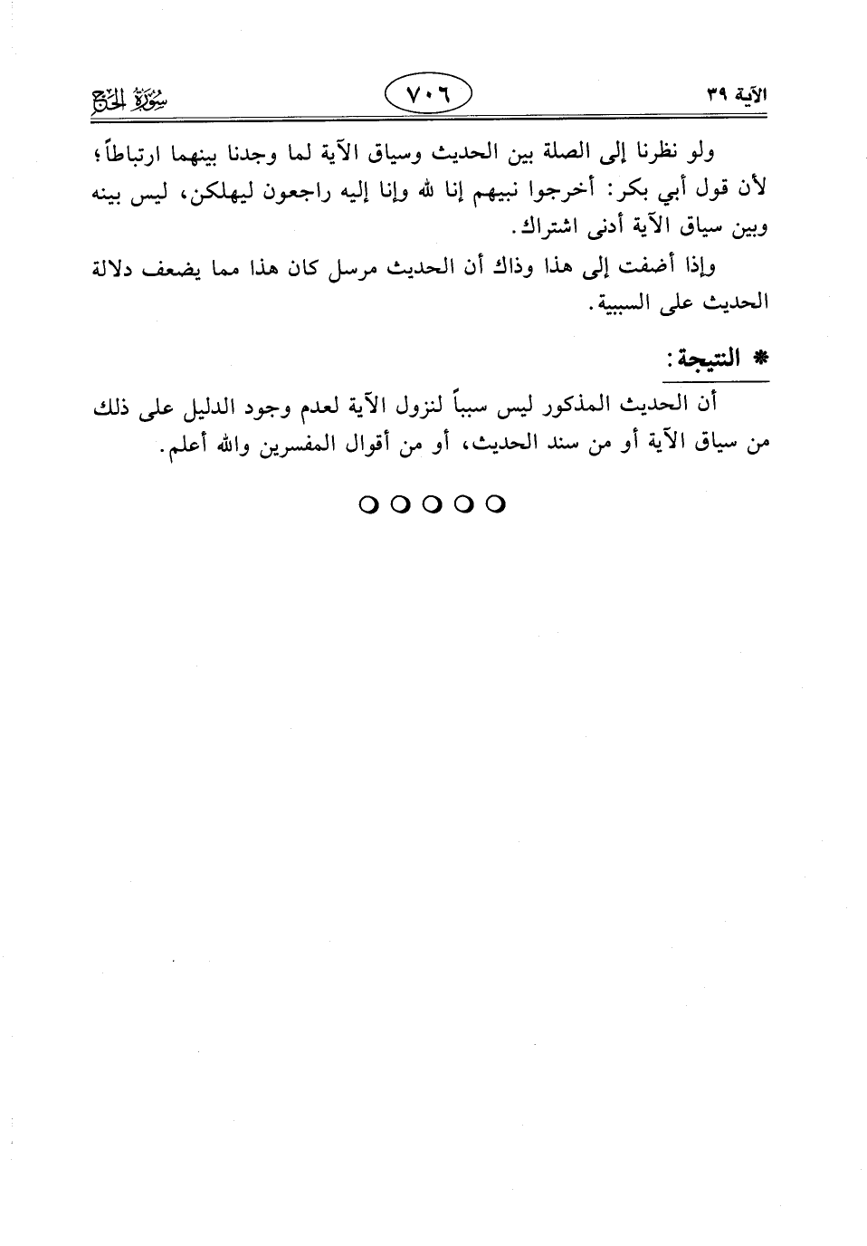 أن الحديث المذكور ليس سببًا لنزول الآية لعدم وجود الدليل على ذلك من سياق الآية أو من سند الحديث، أو من أقوال المفسرين واللَّه أعلم.
