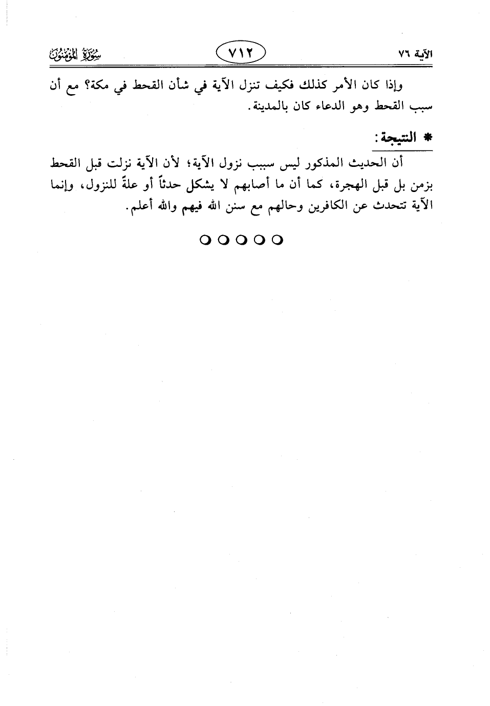 أن الحديث المذكور ليس سببب نزول الآية؛ لأن الآية نزلت قبل القحط بزمن بل قبل الهجرة، كما أن ما أصابهم لا يشكل حدثًا أو علةً للنزول، وإنما الآية تتحدث عن الكافرين وحالهم مع سنن اللَّه فيهم والله أعلم.