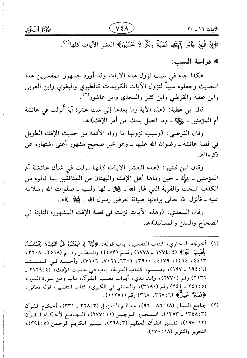 (إِنَّ الَّذِينَ جَاءُوا بِالْإِفْكِ عُصْبَةٌ مِنْكُمْ لَا تَحْسَبُوهُ) العشر الآيات كلها.