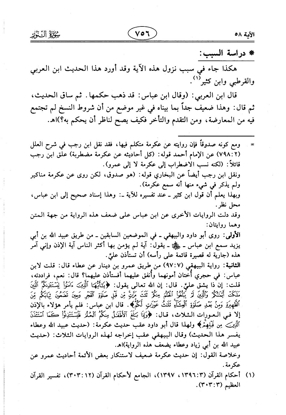 هكذا جاء في سبب نزول هذه الآية وقد أورد هذا الحديث ابن العربي والقرطبي وابن كثير.