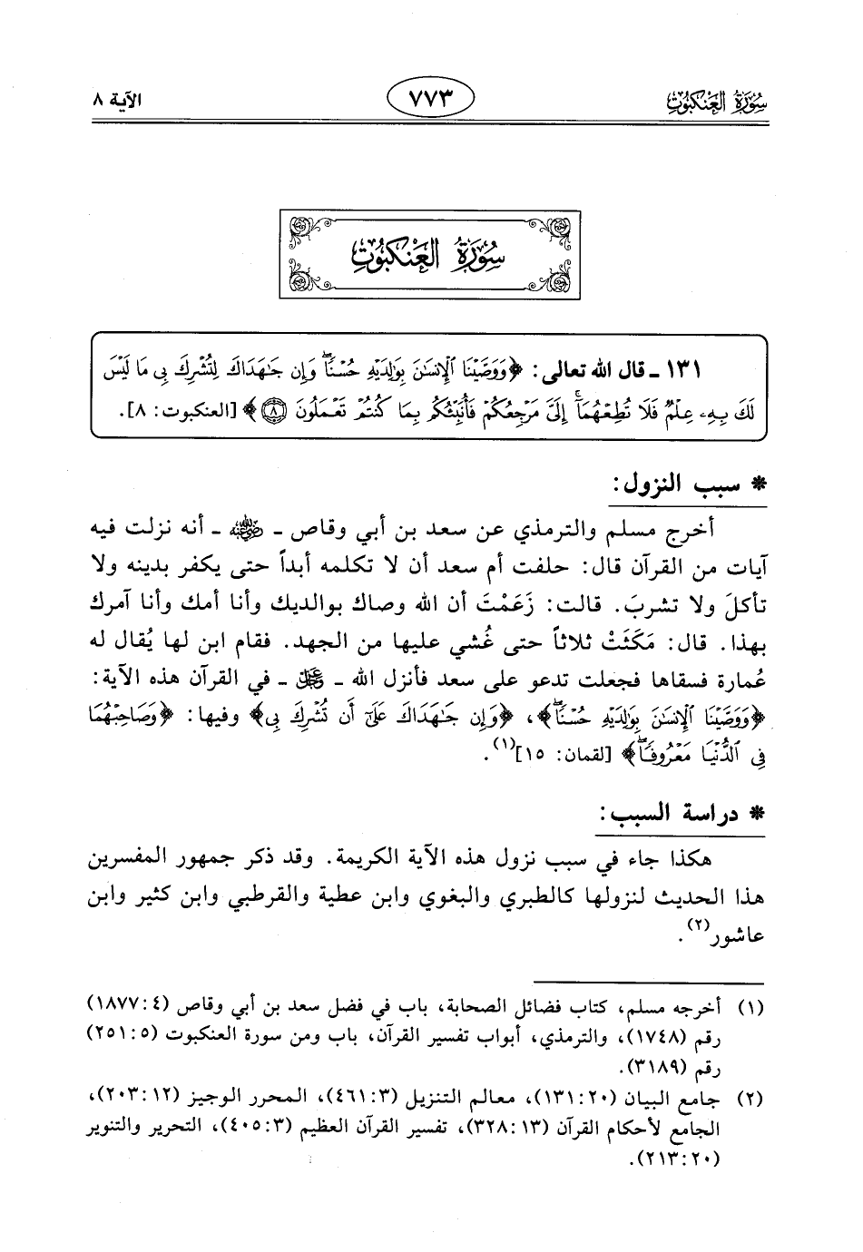 131 - قال الله تعالى: (وَوَصَّيْنَا الْإِنْسَانَ بِوَالِدَيْهِ حُسْنًا وَإِنْ جَاهَدَاكَ لِتُشْرِكَ بِي مَا لَيْسَ لَكَ بِهِ عِلْمٌ فَلَا تُطِعْهُمَا إِلَيَّ مَرْجِعُكُمْ فَأُنَبِّئُكُمْ بِمَا كُنْتُمْ تَعْمَلُونَ (8)