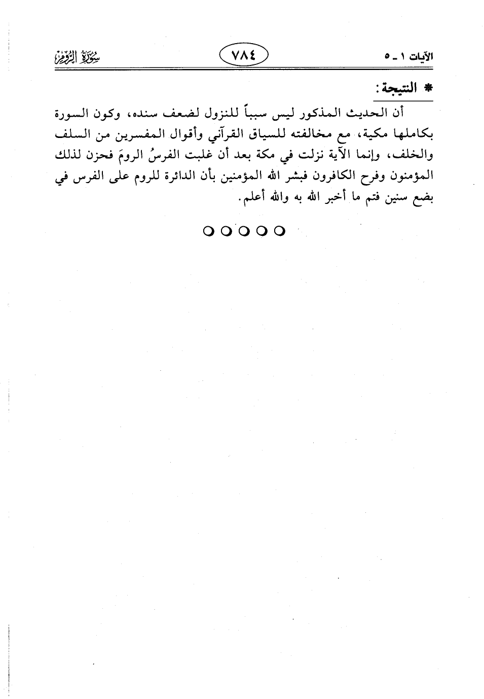 أن الحديث المذكور ليس سببًا للنزول لضعف سنده، وكون السورة بكاملها مكية، مع مخالفته للسياق القرآني وأقوال المفسرين من السلف والخلف، وإنما الآية نزلت في مكة بعد أن غلبت الفرسُ الرومَ فحزن لذلك المؤمنون وفرح الكافرون فبشر الله المؤمنين بأن الدائرة للروم على الفرس في بضع سنين فتم ما أخبر الله به واللَّه أعلم.