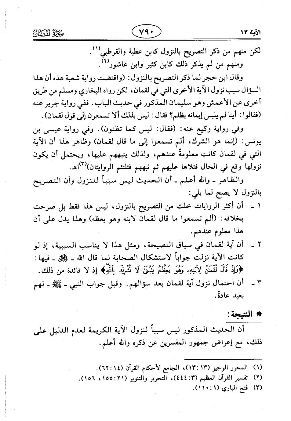 1 - أن أكثر الروايات خلت من التصريح بالنزول، ليس هذا فقط بل صرحت بخلافه: (ألم تسمعوا ما قال لقمان لابنه وهو يعظه) وهذا يدل على أن هذا معلوم عندهم.