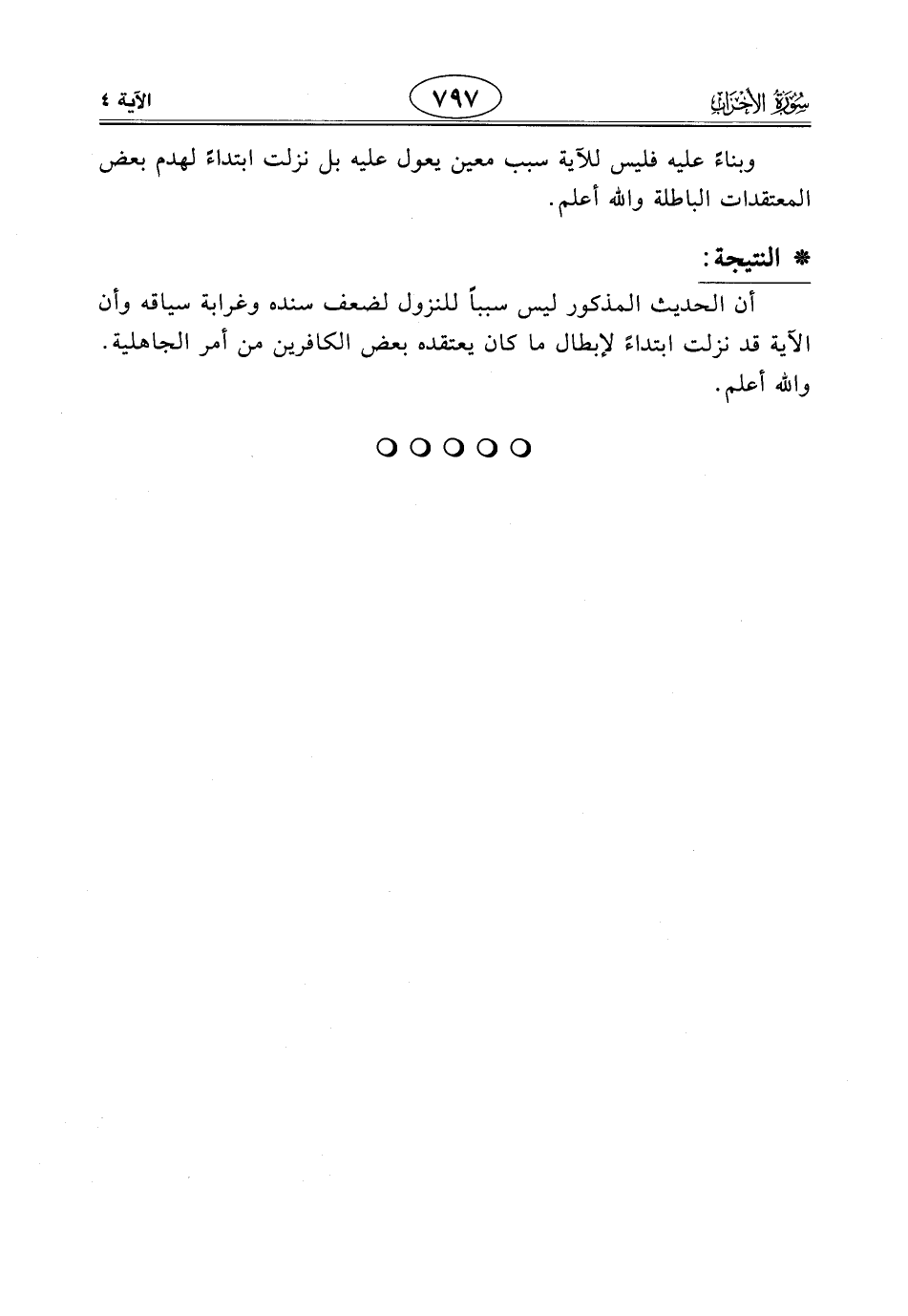 أن الحديث المذكور ليس سببًا للنزول لضعف سنده وغرابة سياقه وأن الآية قد نزلت ابتداءً لإبطال ما كان يعتقده بعض الكافرين من أمر الجاهلية. واللَّه أعلم.