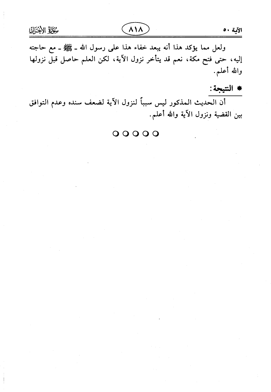 ولعل مما يؤكد هذا أنه يبعد خفاء هذا على رسول الله - صَلَّى اللَّهُ عَلَيْهِ وَسَلَّمَ - مع حاجته إليه، حتى فتح مكة، نعم قد يتأخر نزول الآية، لكن العلم حاصل قبل نزولها واللَّه أعلم.