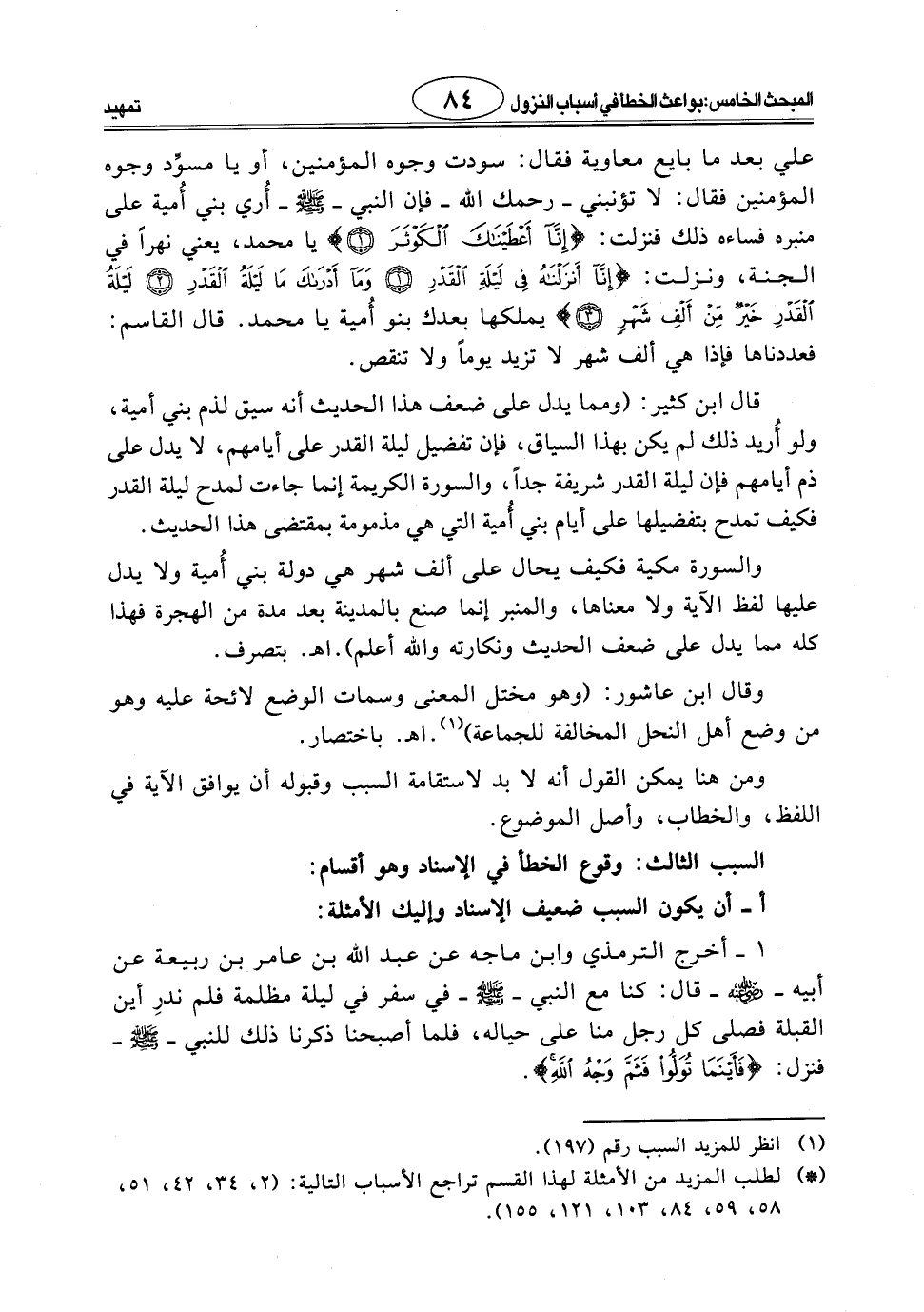 قال ابن كثير: (ومما يدل على ضعف هذا الحديث أنه سيق لذم بني أمية، ولو أُريد ذلك لم يكن بهذا السياق، فإن تفضيل ليلة القدر على أيامهم، لا يدل على ذم أيامهم فإن ليلة القدر شريفة جدًا، والسورة الكريمة إنما جاءت لمدح ليلة القدر فكيف تمدح بتفضيلها على أيام بني أُمية التي هي مذمومة بمقتضى هذا الحديث.