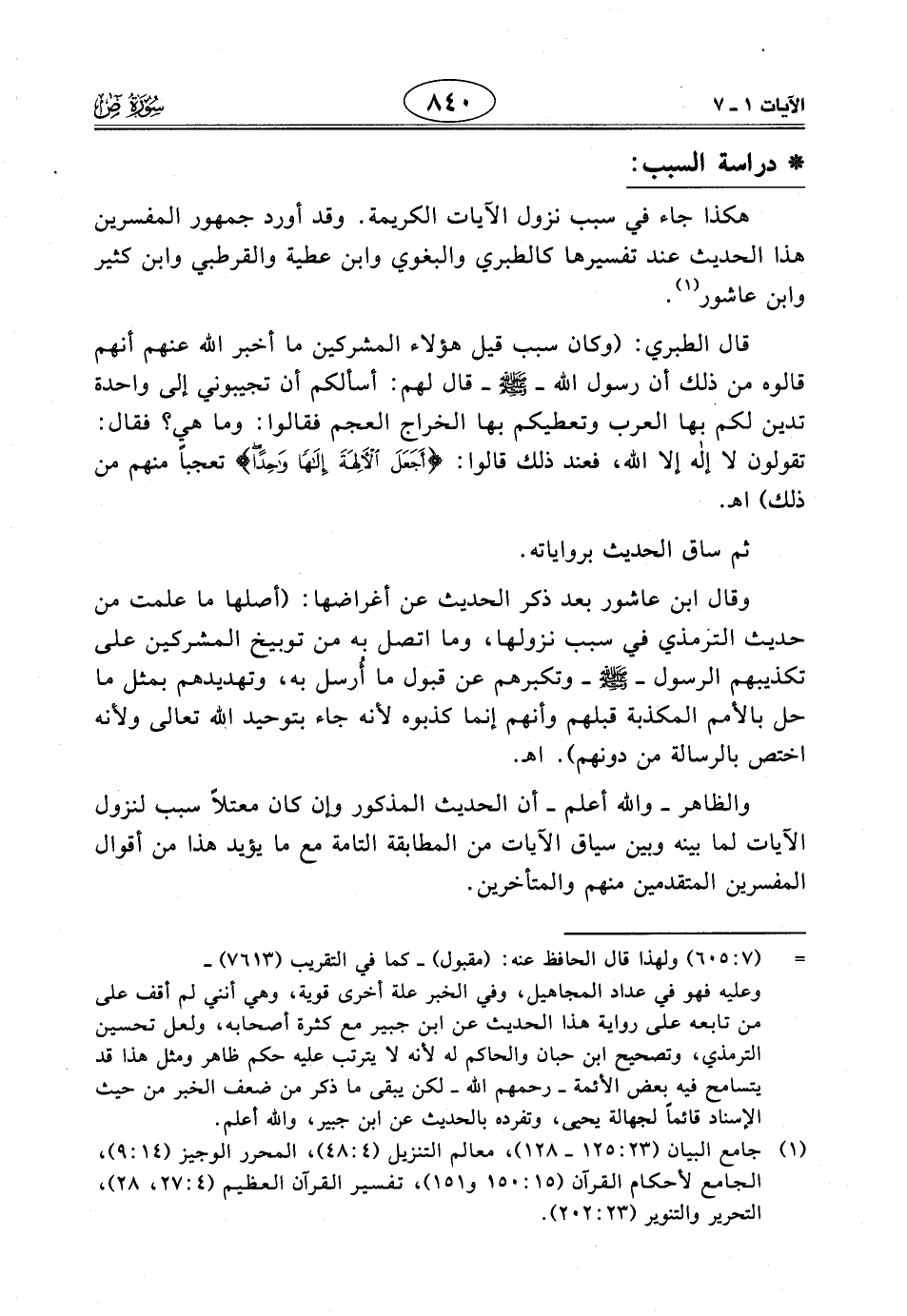 والظاهر - والله أعلم - أن الحديث المذكور وإن كان معتلاً سبب لنزول الآيات لما بينه وبين سياق الآيات من المطابقة التامة مع ما يؤيد هذا من أقوال المفسرين المتقدمين منهم والمتأخرين.