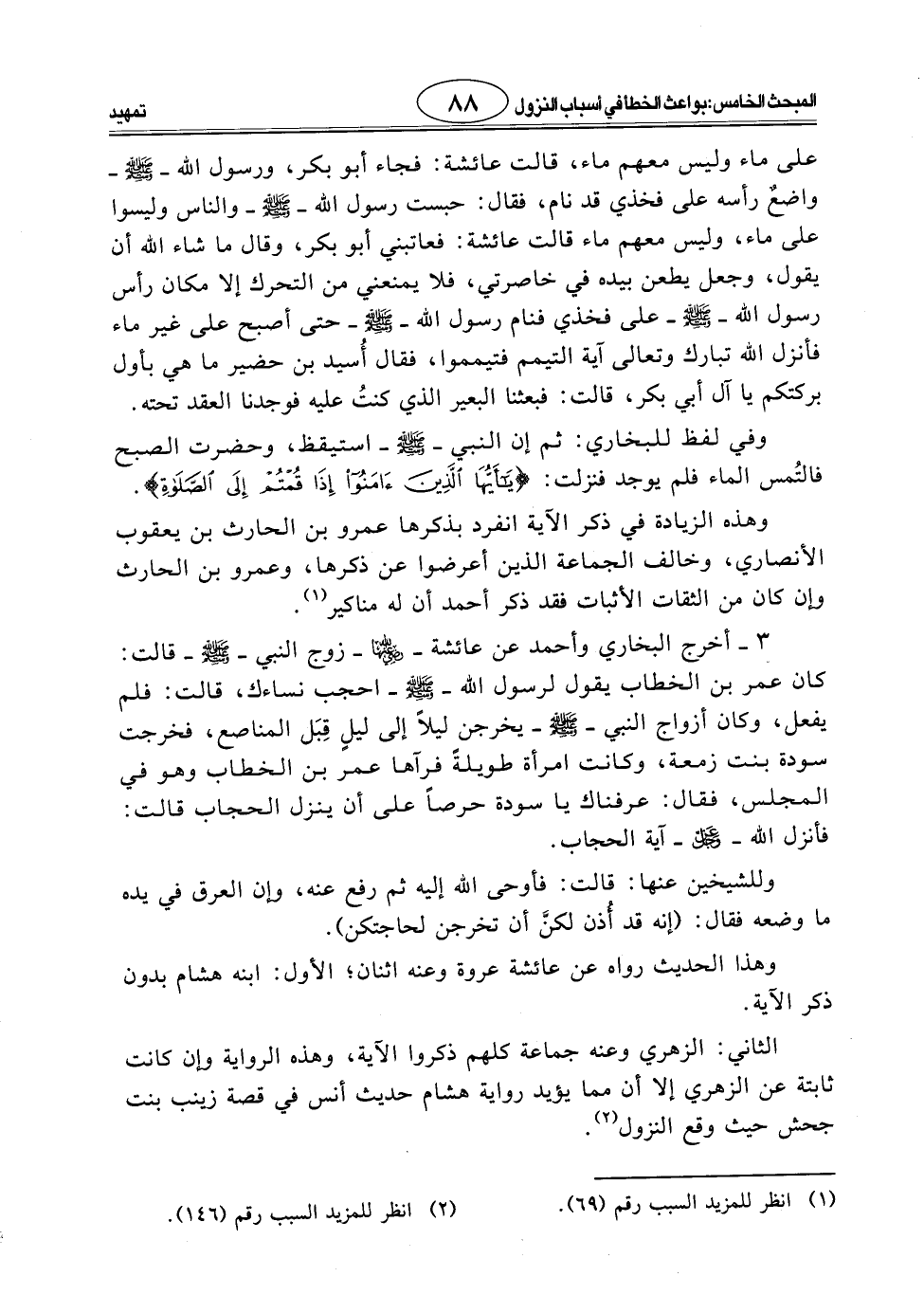 وفي لفظ للبخاري: ثم إن النبي - صَلَّى اللَّهُ عَلَيْهِ وَسَلَّمَ - استيقظ، وحضرت الصبح فالتُمس الماء فلم يوجد فنزلت: (يَا أَيُّهَا الَّذِينَ آمَنُوا إِذَا قُمْتُمْ إِلَى الصَّلَاةِ).