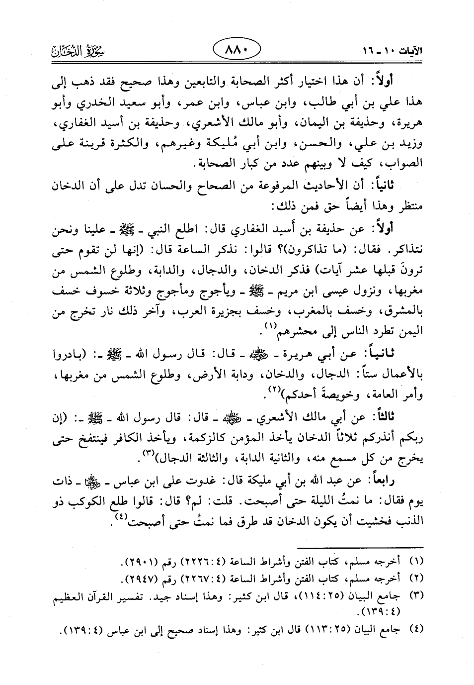 رابعاً: عن عبد اللَّه بن أبي مليكة قال: غدوت على ابن عبَّاسٍ - رَضِيَ اللَّهُ عَنْهُمَا - ذات يوم فقال: ما نمتُ الليلة حتى أصبحت. قلت: لم؟ قال: قالوا طلع الكوكب ذو الذنب فخشيت أن يكون الدخان قد طرق فما نمتُ حتى أصبحت.