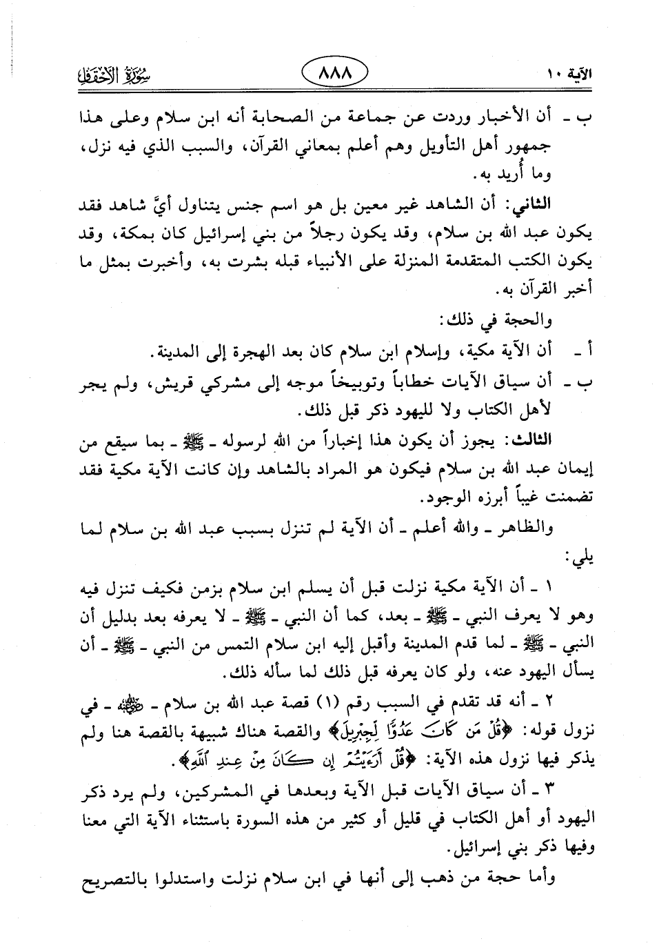 ب - أن الأخبار وردت عن جماعة من الصحابة أنه ابن سلام وعلى هذا جمهور أهل التأويل وهم أعلم بمعاني القرآن، والسبب الذي فيه نزل، وما أُرلد به.
