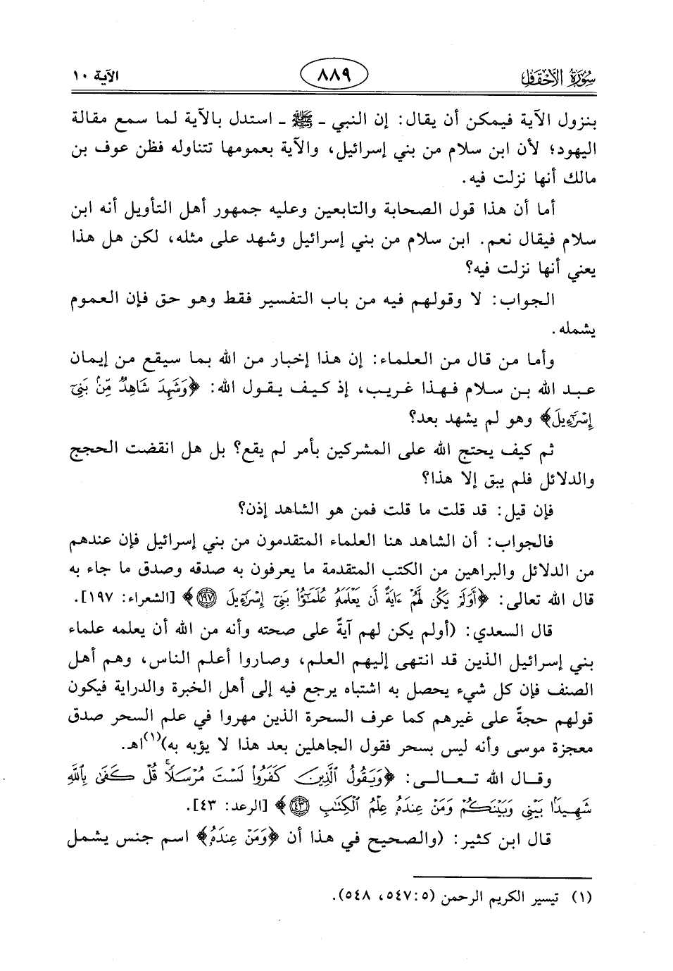 وأما من قال من العلماء: إن هذا إخبار من اللَّه بما سيقع من إيمان عبد اللَّه بن سلام فهذا غريب، إذ كيف يقول اللَّه: (وَشَهِدَ شَاهِدٌ مِنْ بَنِي إِسْرَائِيلَ) وهو لم يشهد بعد؟