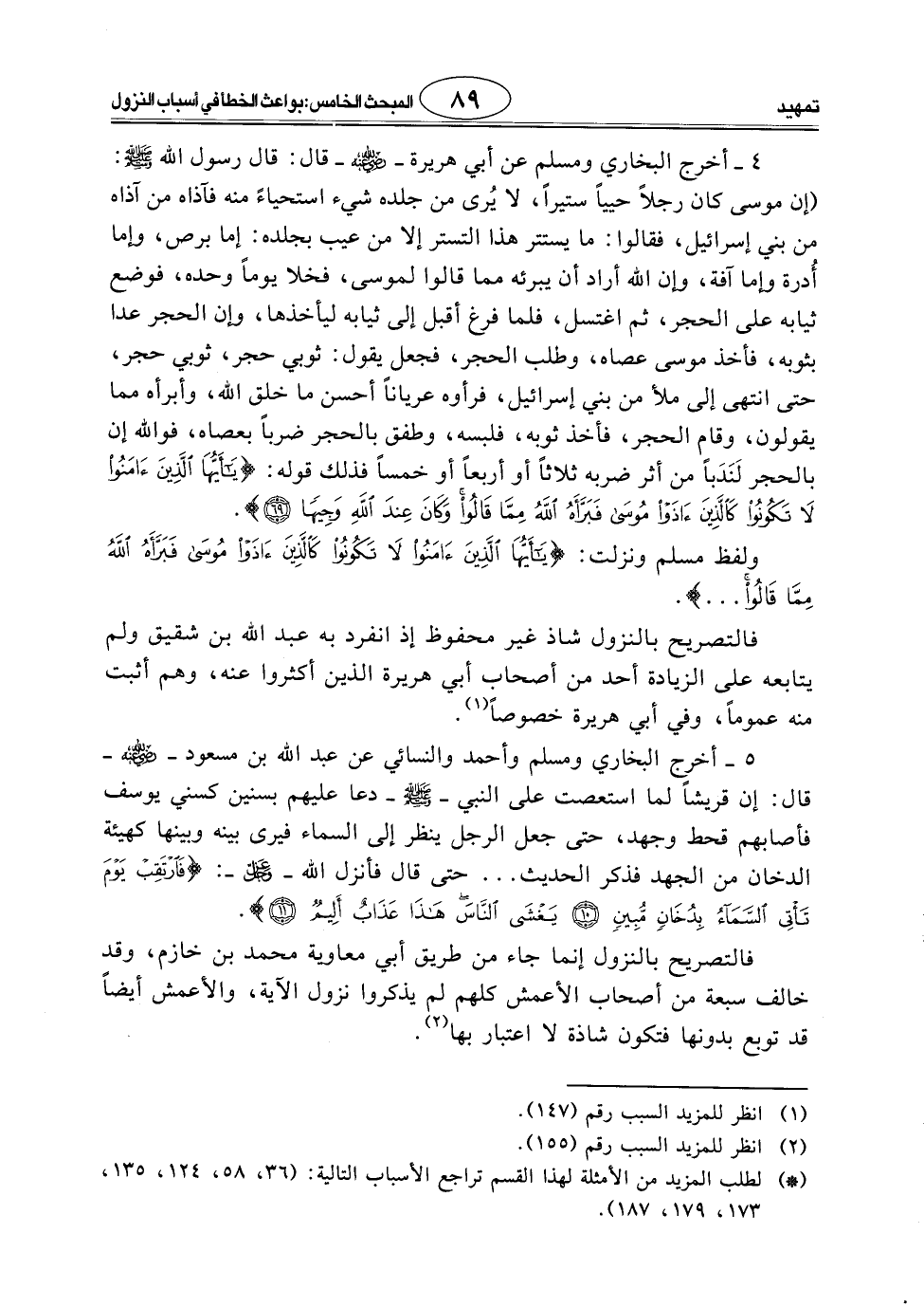 ولفظ مسلم ونزلت: (يَا أَيُّهَا الَّذِينَ آمَنُوا لَا تَكُونُوا كَالَّذِينَ آذَوْا مُوسَى فَبَرَّأَهُ اللَّهُ مِمَّا قَالُوا ... ).