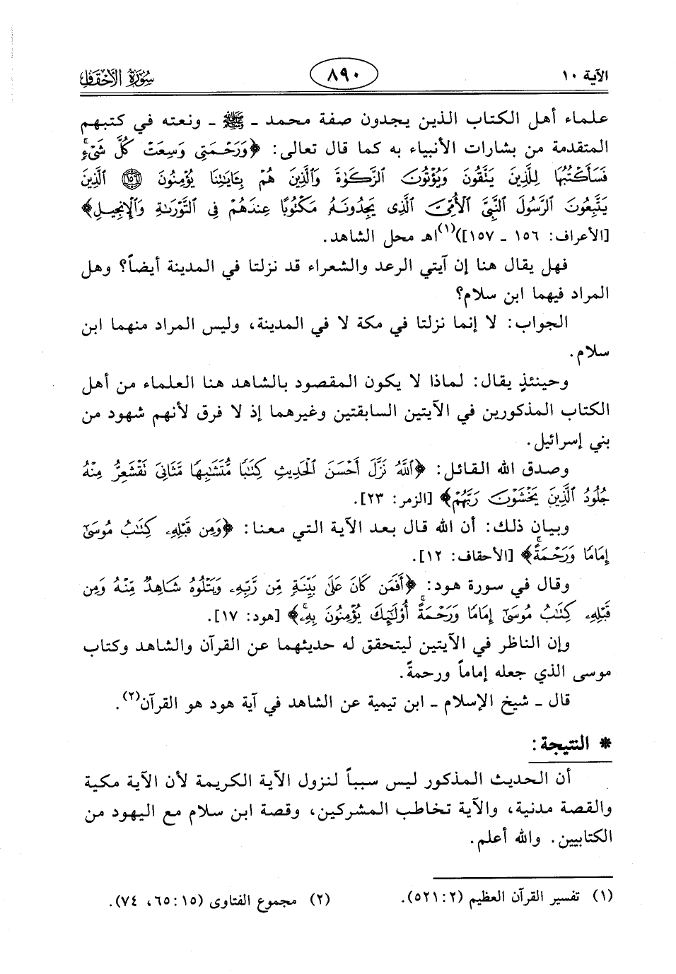 وقال في سورة هود: (أَفَمَنْ كَانَ عَلَى بَيِّنَةٍ مِنْ رَبِّهِ وَيَتْلُوهُ شَاهِدٌ مِنْهُ وَمِنْ قَبْلِهِ كِتَابُ مُوسَى إِمَامًا وَرَحْمَةً أُولَئِكَ يُؤْمِنُونَ بِهِ).