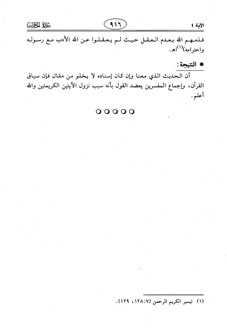 أن الحديث الذي معنا وإن كان إسناده لا يخلو من مقال فإن سياق القرآن، وإجماع المفسرين يعضد القول بأنه سبب نزول الآيتين الكريمتين واللَّه أعلم.